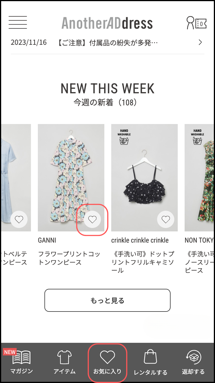 上記コンテンツを通じて気になるアイテムを見つけたら、商品写真右下のハートマークをタップして「お気に入り登録」するのがおすすめ。