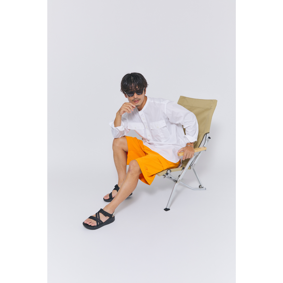 ザ・ノース・フェイス(THE NORTH FACE)のショートパンツは、鮮やかなオレンジが特徴的。アウトドアブランドならではの機能性に優れた素材で、暑い夏でも快適です。トップスにはきれいめな白シャツを合わせ、上品で清潔感のある印象に。仕上げにサングラスを添えて、足元にブラックのスポーツサンダルを合わせれば、休日のレジャーにもぴったりなコーディネートの完成です。