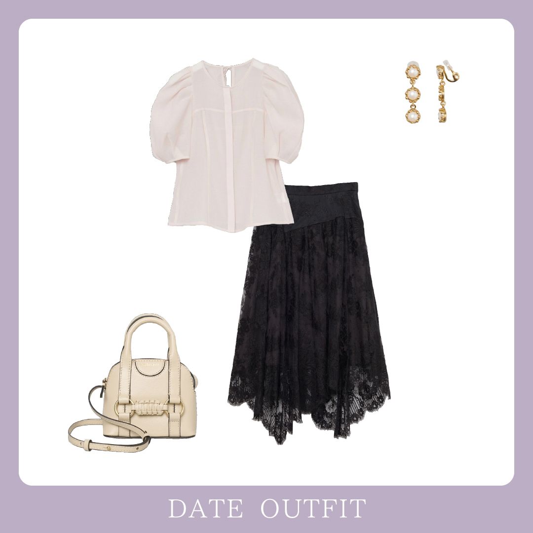 シワが目立ちにくいボトムスのなかでも、デートにぴったりな華やかさを演出できるのがレーススカート。レース自体に程よい厚みがあるものを選ぶと、美しさをキープしやすいです。
