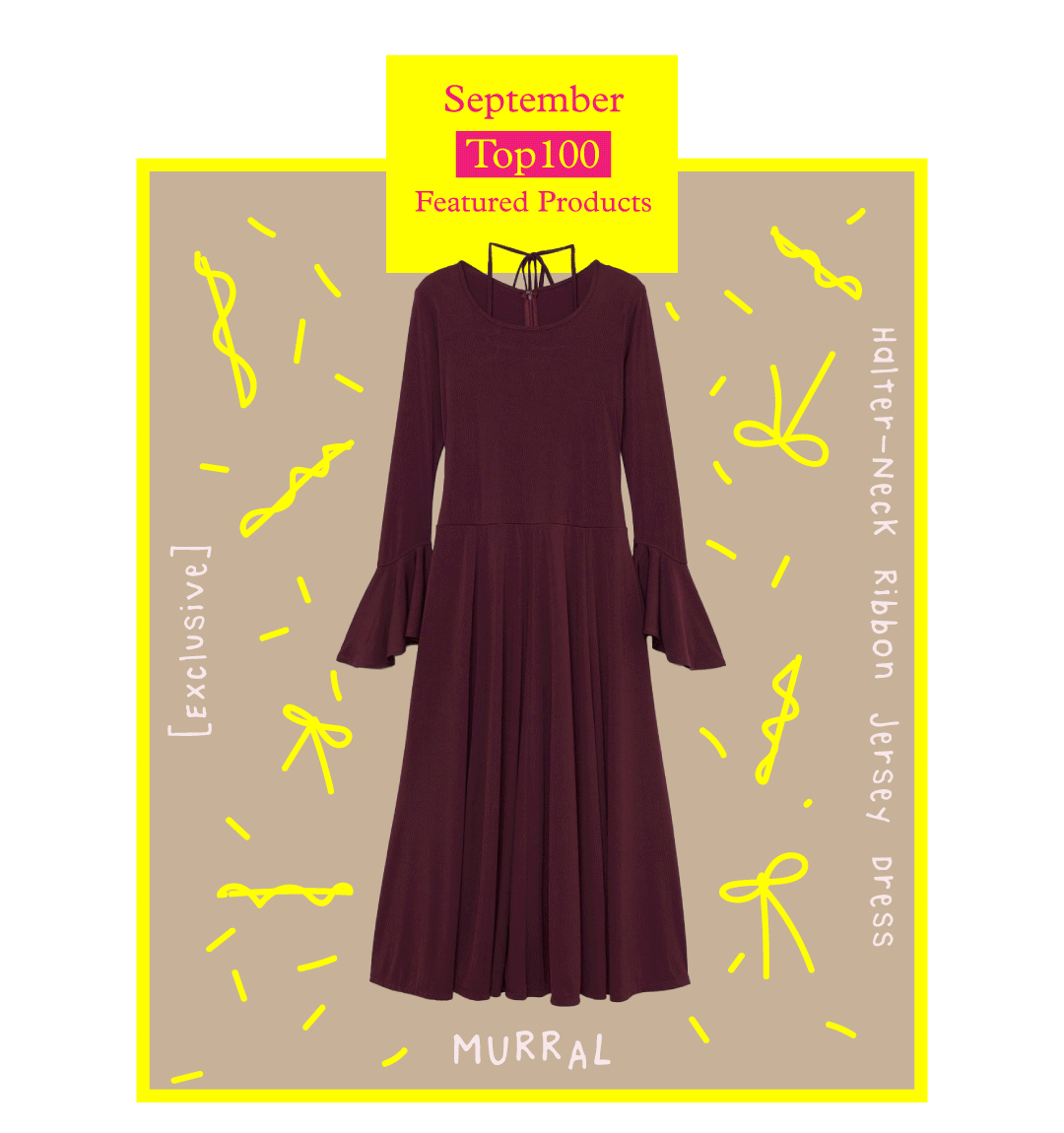 クラシカルなムードが漂う、ミューラル(MURRAL)の別注カラーワンピースもランクイン。ベースは、ミニマルなシルエットに袖口のドレープや首まわりのリボンがアクセントを添える、ホルターネックリボンドレープワンピースです。