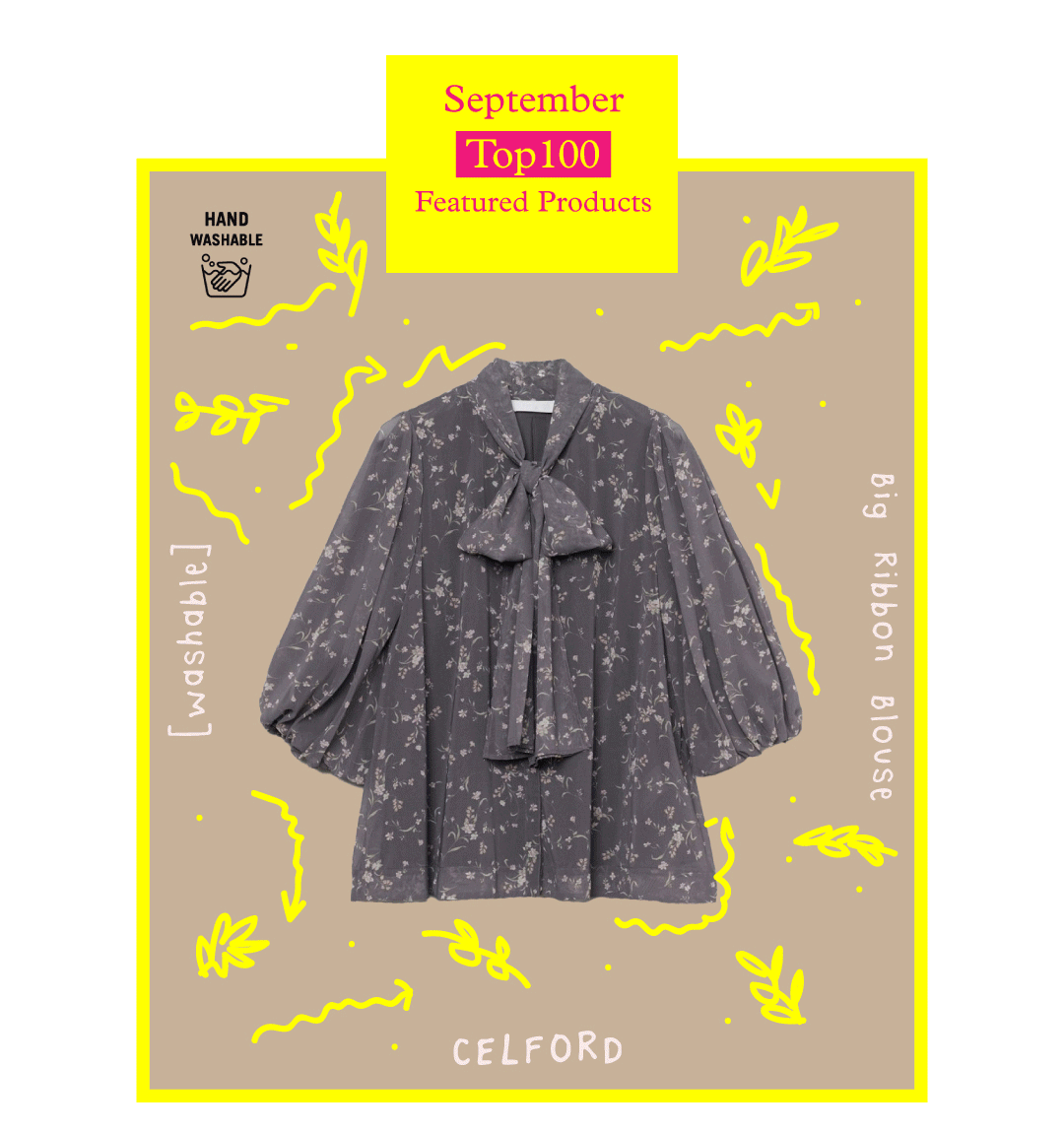 セルフォードからは、繊細な小花柄をのせたブラウスがランクイン。存在感のあるリボンディテールやボリュームスリーブも、落ち着いたトーンのグレーで仕上げることで、ぐっとシックな印象に。