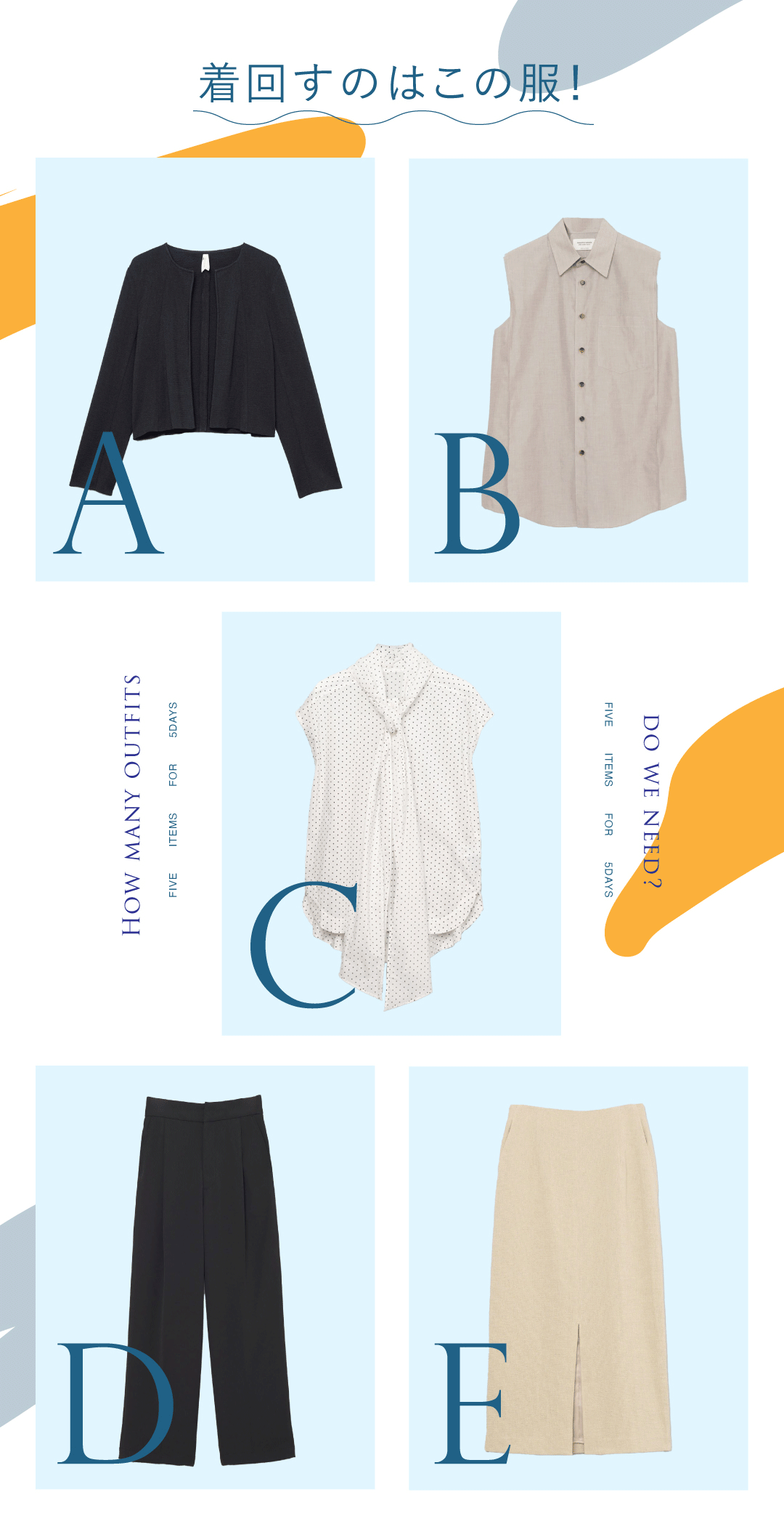 毎日暑いけれど、きちんと感はキープしたい。そんな夏の通勤シーンに頼れるのは、涼しく快適に過ごせるきれいめなアイテム。今回は、アナザーアドレスで見つけた厳選5着を着回して作る、平日5日間のオフィスカジュアルコーデをご提案します。