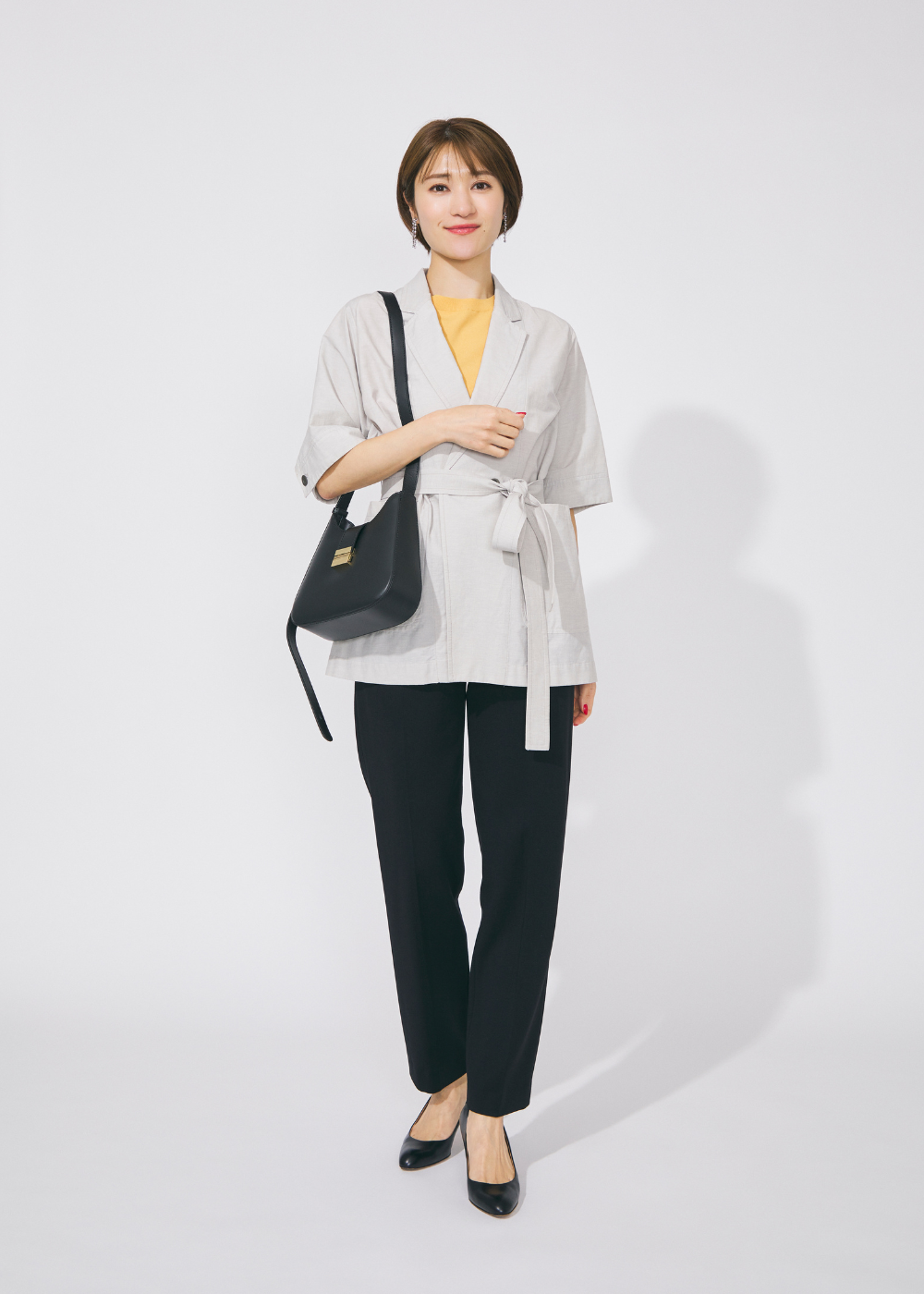 ジャケットを羽織る場合は、通気性が良くさらりとしたサマーウールが快適。リト ストラクチャー(Rito structure)のジャケットは、ショート丈、ロング丈、さらにジレとしても着用できる3wayで、季節の変わり目に活躍することなし。首元からボウタイブラウスを覗かせれば、セットアップスタイルに程よい女性らしさを添えらえれます。