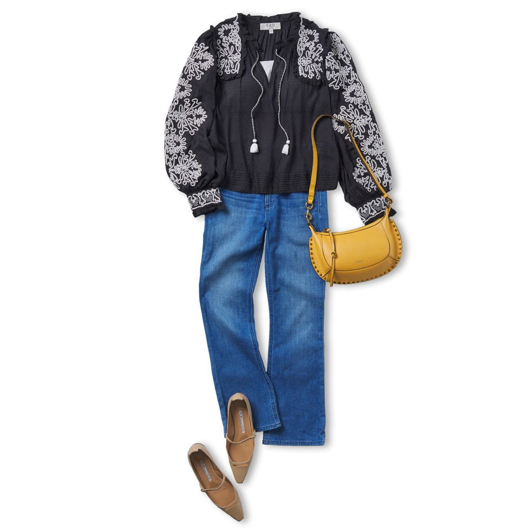 クラシックなデニムに、刺繍やフリンジ、ビジューなどで装飾を施したデニムも見逃せないトレンドアイテム。一味違うボトムスを主役にした、遊び心溢れる着こなしを楽しんで。