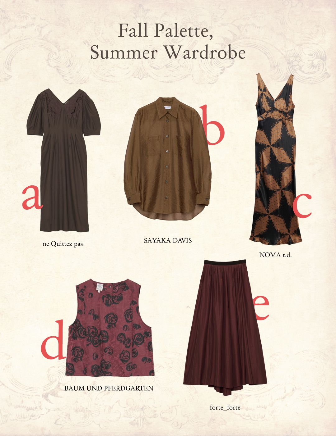 a.ワンピース(ヌキテパ)「まさに“秋色を夏服で”を象徴するような1着。ブラウンならではの深みが秋らしさを演出しながら、真夏のような暑さの日もさらっと快適に着られます」