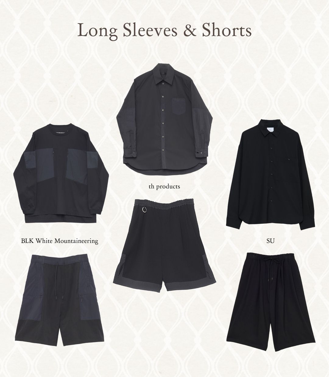 加えて黒ならシックに決まるので、ロングスリーブ×ショーツの組み合わせに慣れていない方でもトライしやすいと思います。もし“ちょっと黒すぎるかな”と感じたら、ソックスやインナーで色を足すと簡単にマイルドに。逆にとことんモードっぽさを楽しみたい方は、靴まで黒で統一するのもおすすめです。