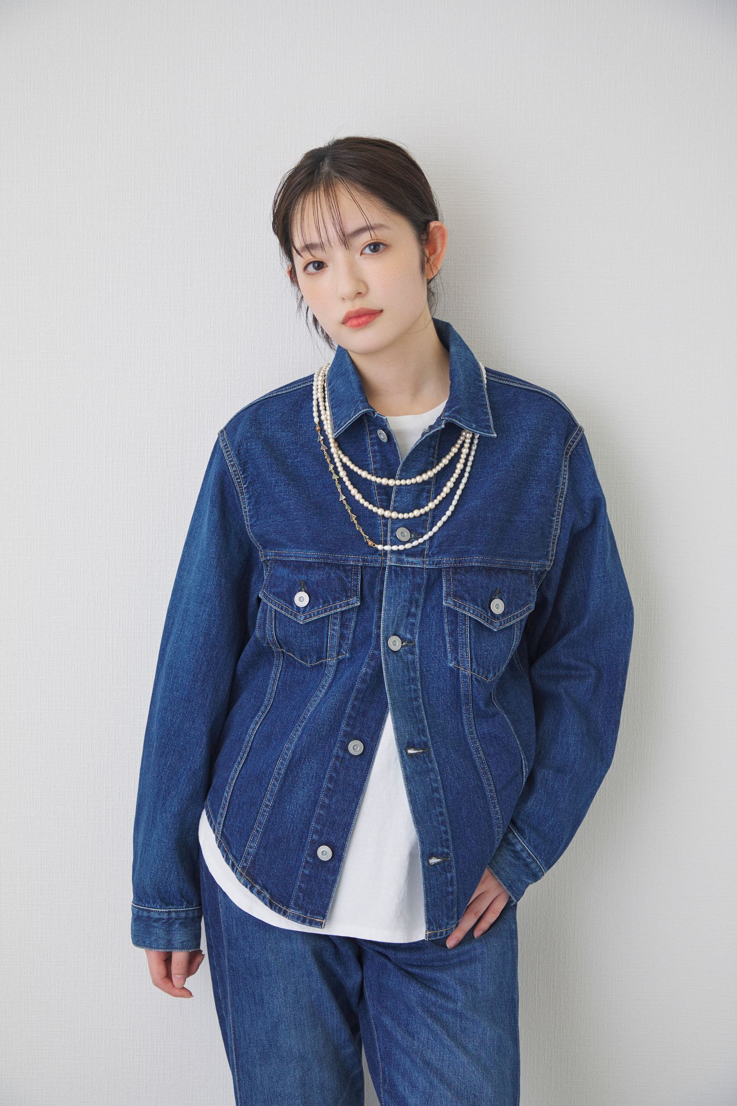 王道のデニムジャケットに同素材のデニムパンツを合わせた、旬のデニムONデニムスタイル。ラフな印象になりがちなデニムも、パールネックレスを重ね付けすることでぐっと華やかに。白Tシャツをインナーに仕込めば、抜け感と品を兼ね備えた大人のカジュアルコーデが完成します。