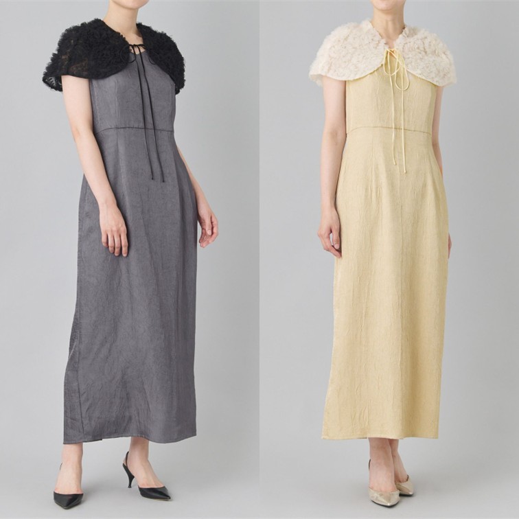 ふわりと華やぐチュールボレロがセットになった、カエン(kaene)のワンピース。ボレロを重ねれば華やぎが増して、結婚式やパーティなどのオケージョンシーンにぴったりです。