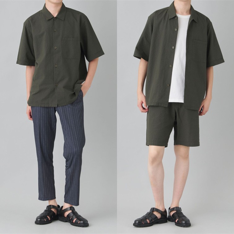 スラックスを合わせればオフィスにも馴染むきれいめスタイルに、ショーツを合わせればリラクシングな装いが完成。アナザーアドレスでは、カーキ、ネイビー、チェック柄の3種をご用意。カーキとネイビーは、ショートパンツも展開しているので、セットアップでもお楽しみいただけます。