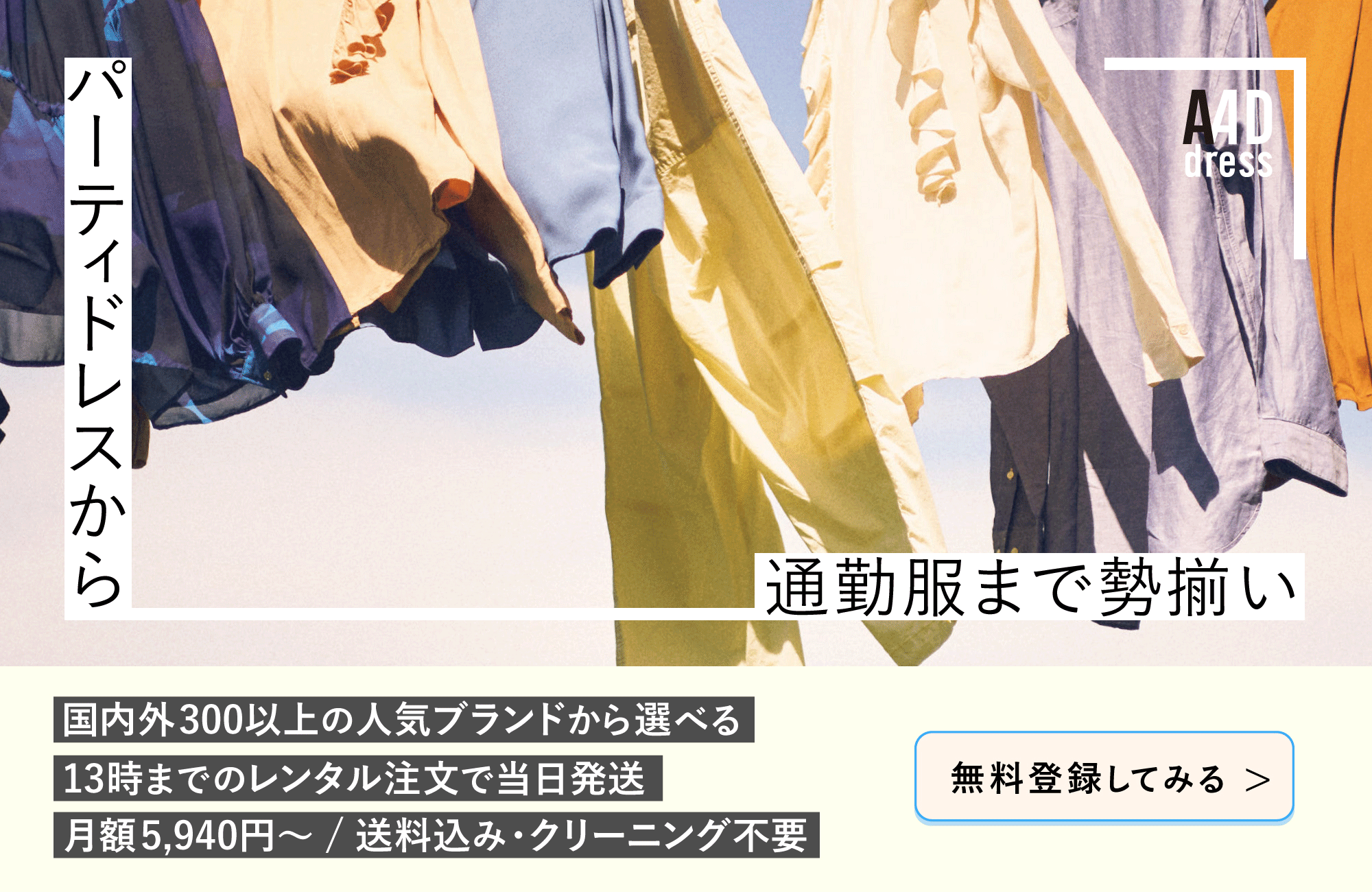 「アナザーアドレス」は、人気ブランドのアイテムを月額5,940円(税込)~レンタルでお試しいただける百貨店業界初のサブスクリプション(月額制)ファッションレンタルサービスです。お呼ばれドレスも1着5,940円(税込)~レンタル可能。詳しくはコチラ。