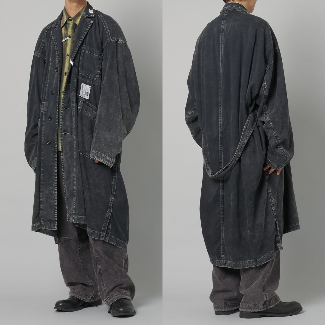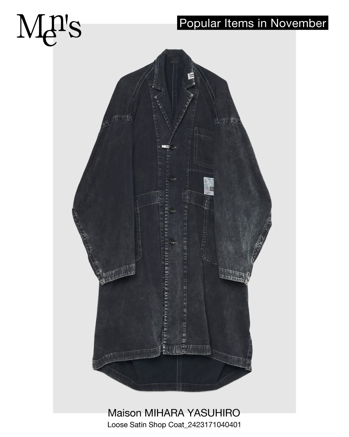 メゾン ミハラヤスヒロ(Maison MIHARA YASUHIRO)のショップコートも注目アイテムにランクイン。コットンサテン素材で仕立てられた1着は、上品な光沢感と滑らかな肌触りが魅力です。ヴィンテージライクな風合いも兼ね備えており、羽織るだけでこなれた印象をプラスできます。