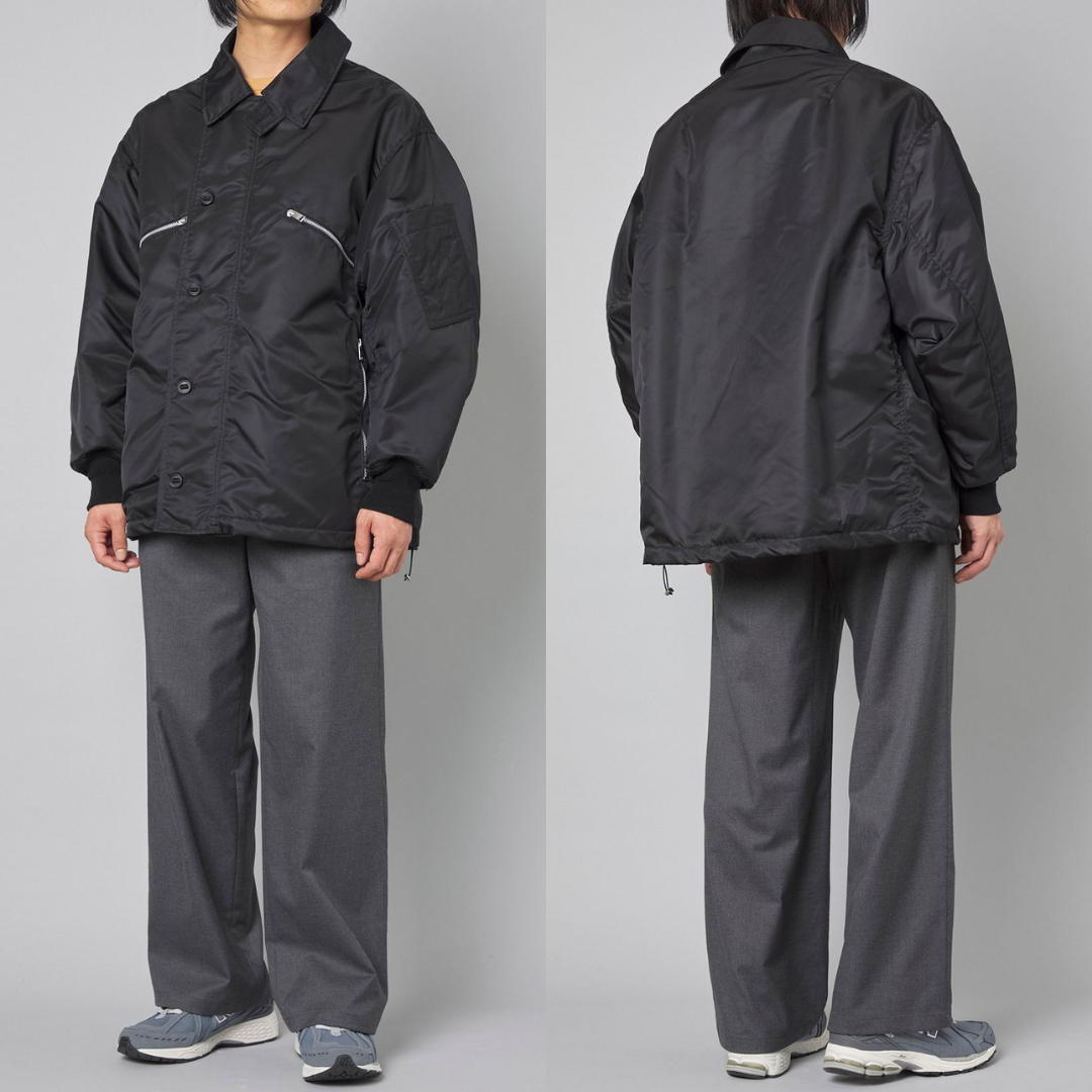 まるでダウンのような軽い中綿入りなので、保温性はもちろん、ストレスなく着られる点もうれしいポイントです。襟元のチンストラップを立てたり、裾に施されたドローコードを絞ったりもできるので、自分好みに着方をアレンジして楽しんでみてください。