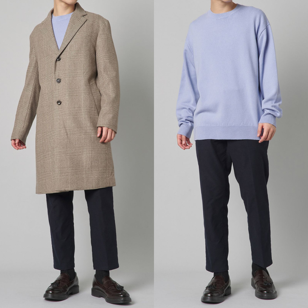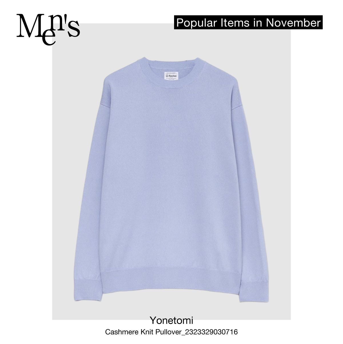 はじめにご紹介するのは、ニットメーカー・ヨネトミ(Yonetomi)が手掛けるカシミヤニット。上質なカシミヤ糸を贅沢に使って度詰めで編み込むことで、カシミヤ特有のやわらかさに加え、ハリとコシを備えた風合いに仕上がっています。11月上旬から中旬にかけて、アウターなしでも暖かく過ごせる保温性の高さも魅力。