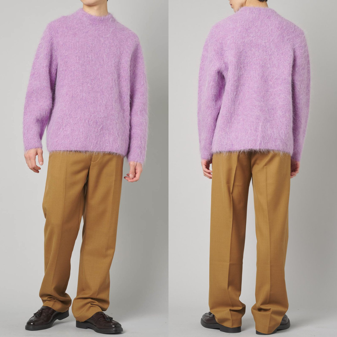 続いては、上質な素材を使用し、高品質で日常のさまざまなシーンになじむミニマルなアイテムを中心に展開するブランド・セファ(Séfr)から、美しいパープルのカラーリングが目を惹くニットをご紹介。単体での着用はもちろん、アウターのインナーとして着用すれば、差し色としても優秀です。