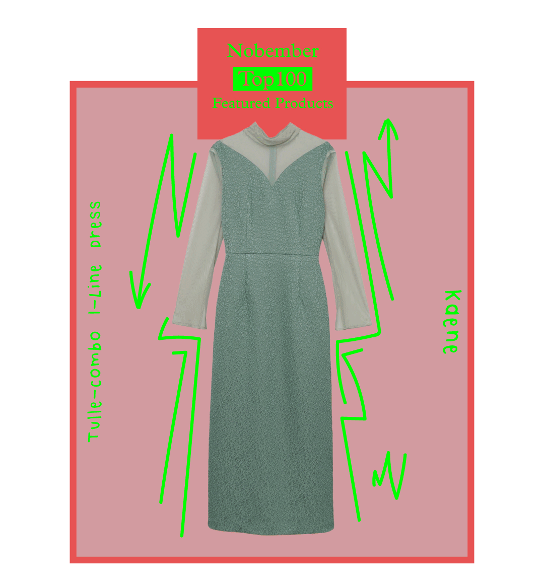 結婚式やパーティなどお呼ばれシーンが増える11月にレンタルしたいカエン(kaene)のIラインドレス。デコルテや袖の透け感が上品で、1枚で華やかな印象に仕上がります。