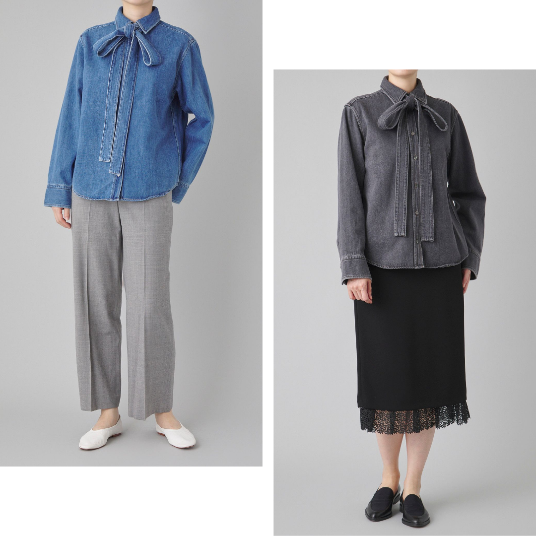 ボウタイ付きシャツカラーデニムシャツS ☓ / M ◯
