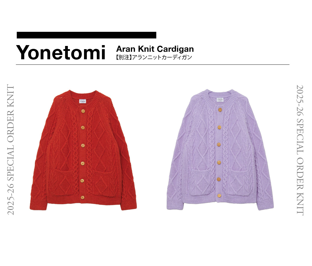 毎回ご好評いただいているアナザーアドレスの別注アイテム。2025-26年秋冬は、ヨネトミ(Yonetomi)のカーディガン、そしてラッピンノット(WRAPINKNOT)のニットとカーディガンをご用意いたしました。