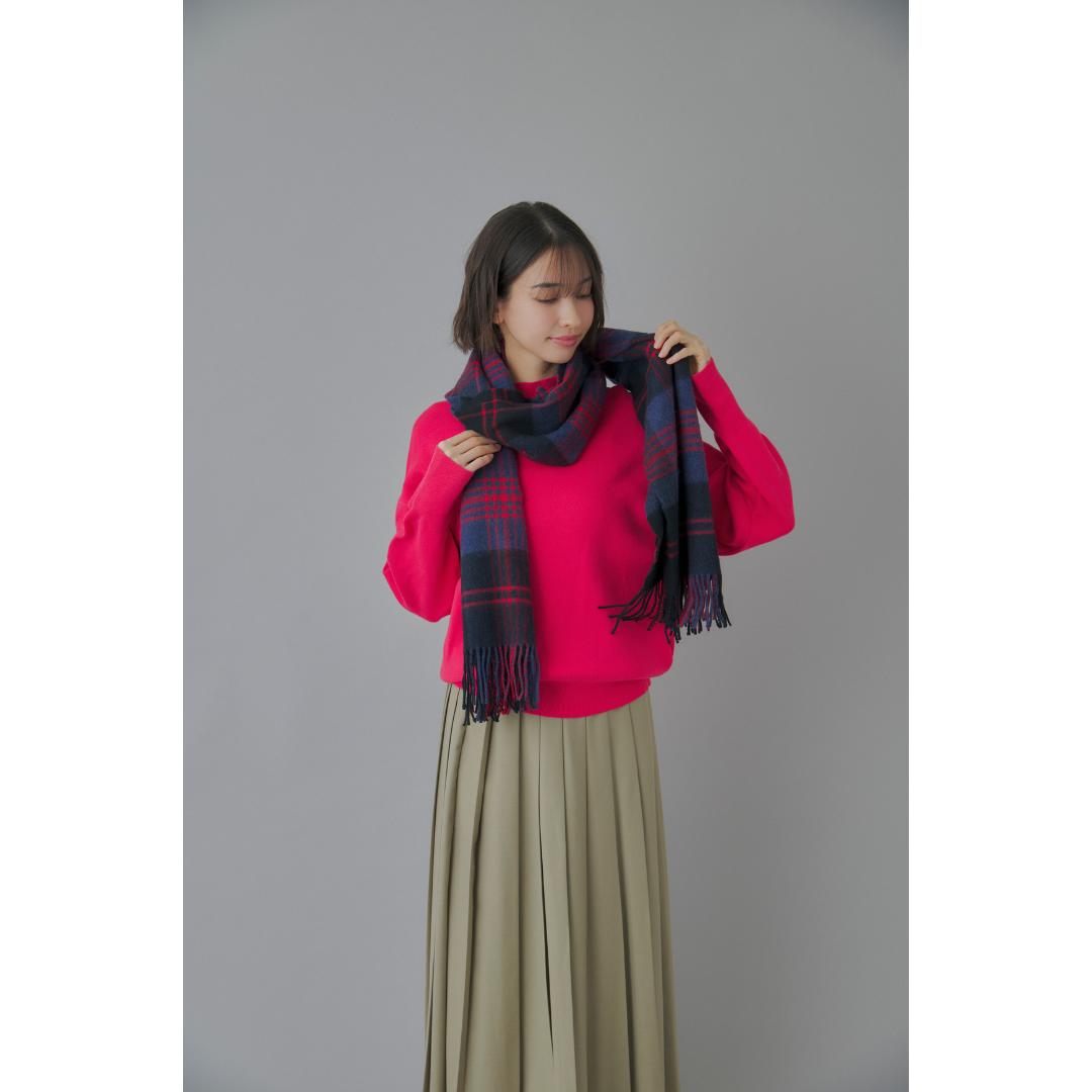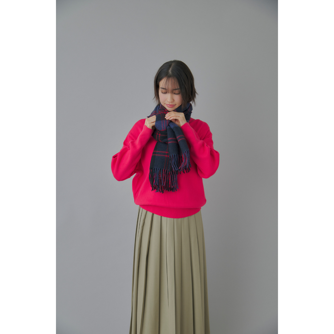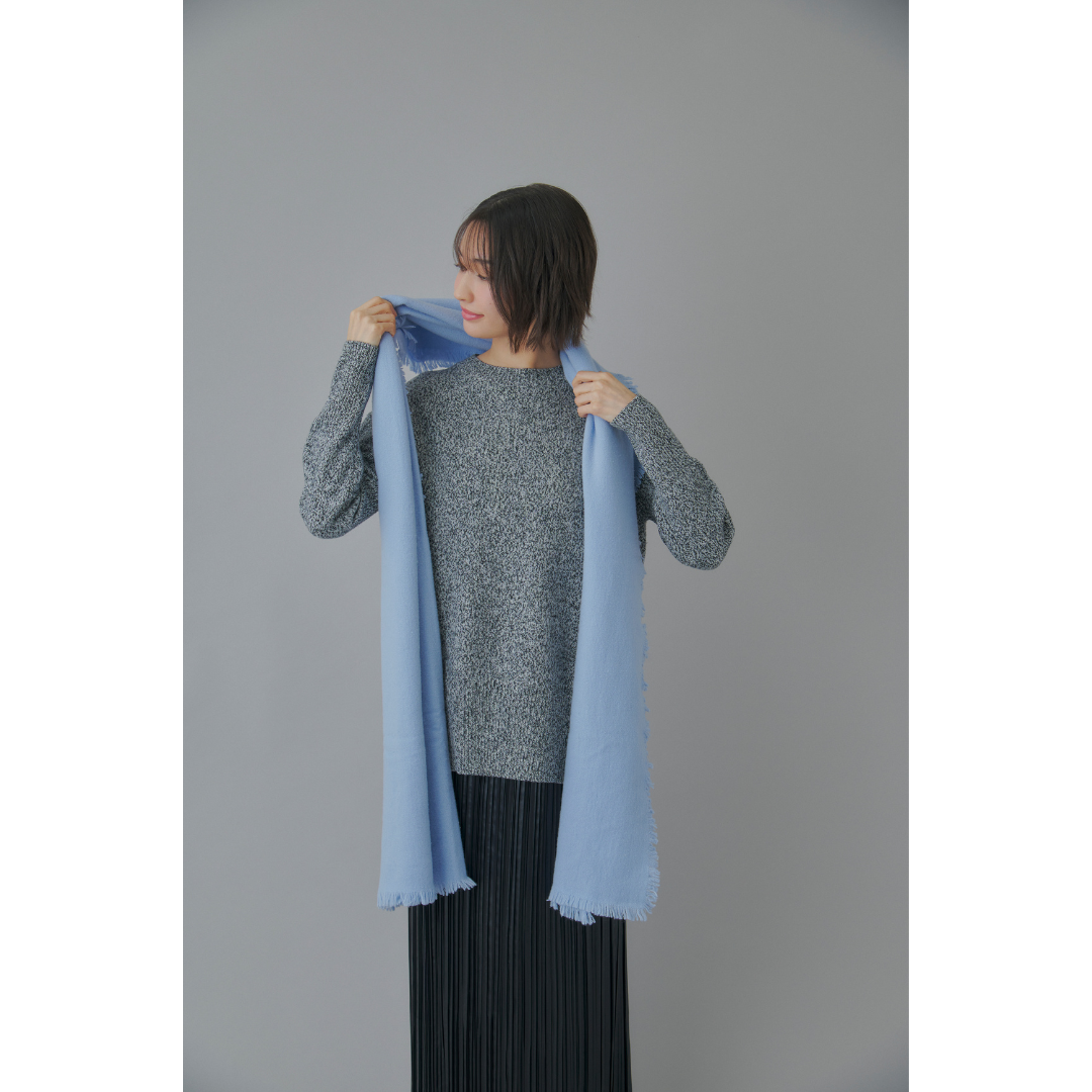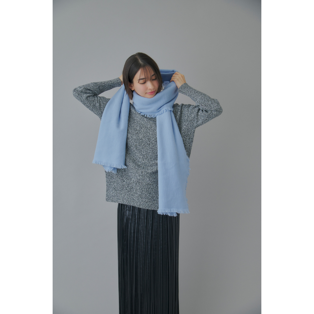 続いて、長めにしたほうのストールを一周して、首に巻きつけます。あまり強く巻かずにふんわり巻くのがポイントです。
