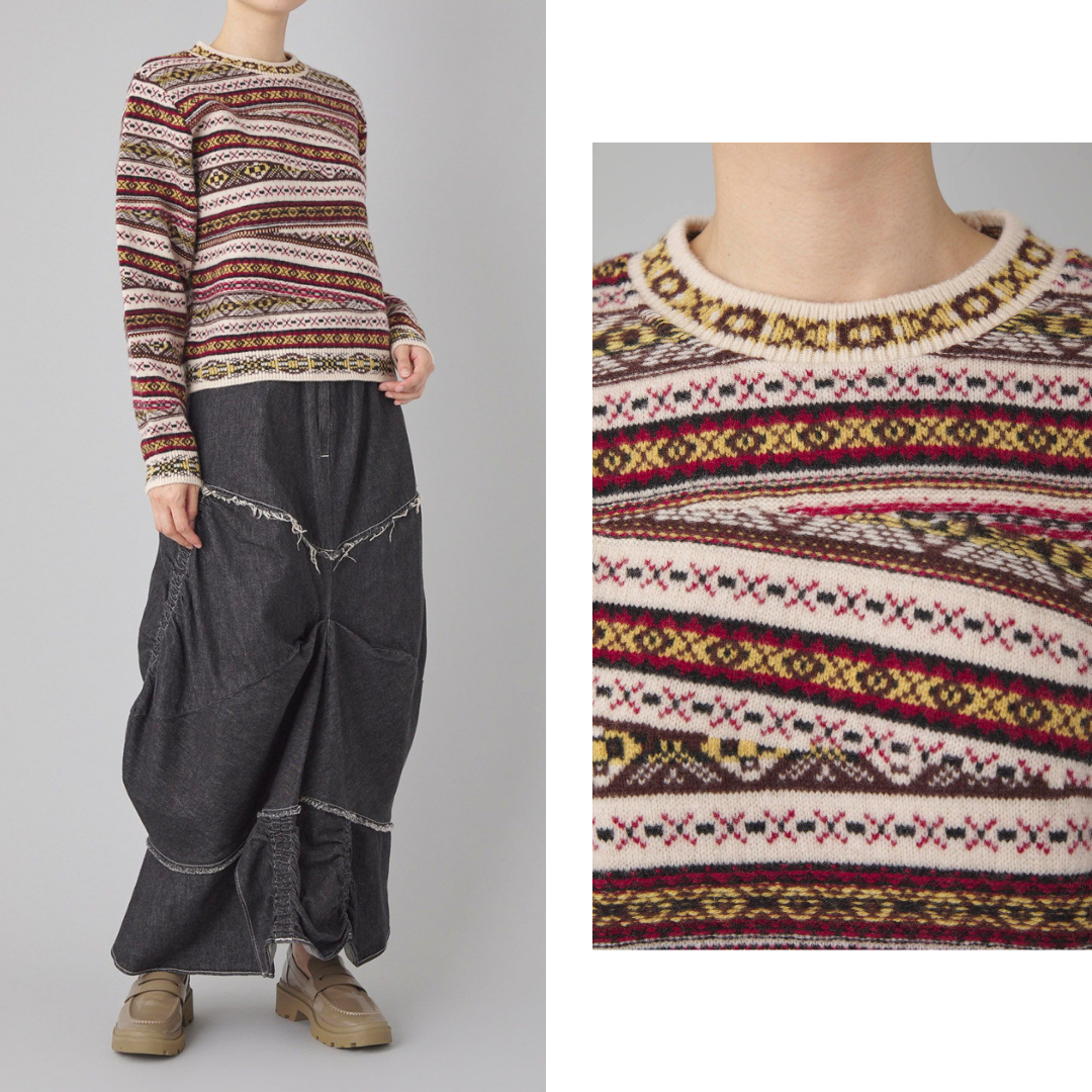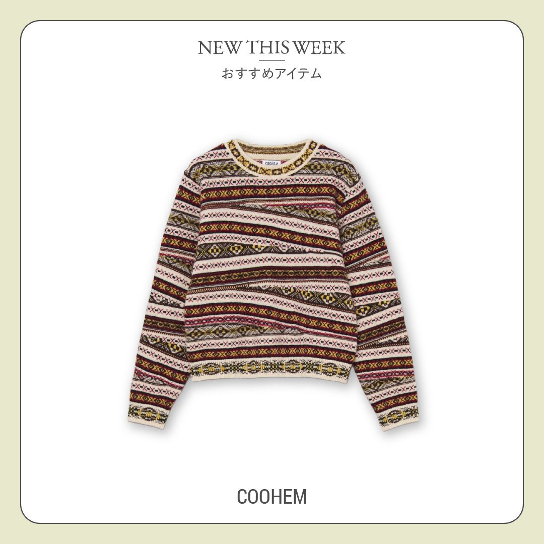 注目商品2点目は、70年以上の歴史を持つニットメーカー「米富繊維」が手掛けるファクトリーブランド「コーヘン(COOHEM)」のニットプルオーバーをピックアップ。トラディショナルなフェアアイル柄をあえて歪ませたデザインで、伝統柄と職人の遊び心が融合したブランドらしい1着です。