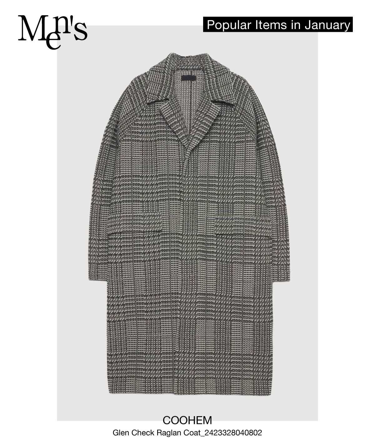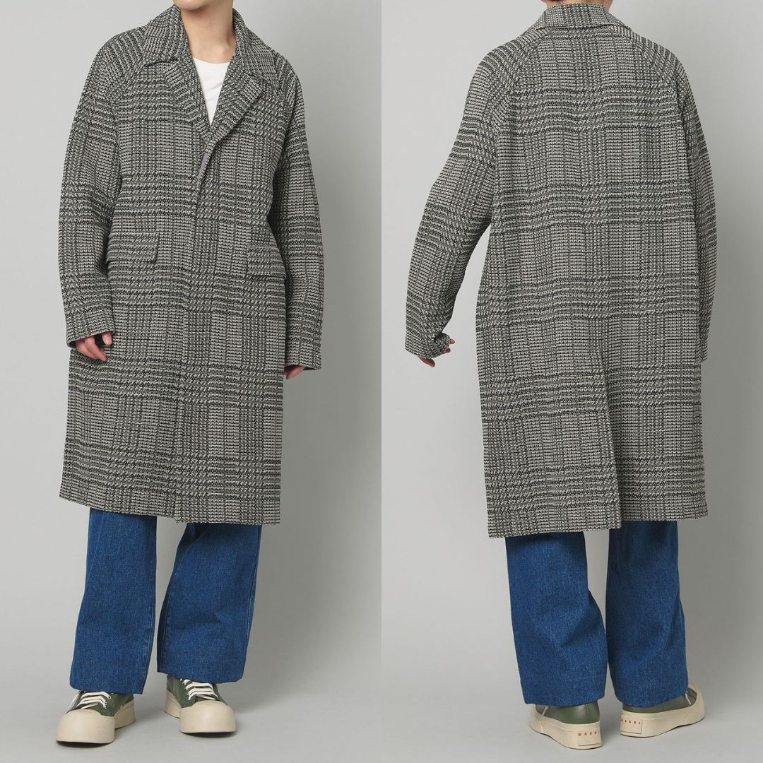 伝統的なグレンチェック柄を、コーヘン(COOHEM)ならではの織りで表現したラグランコート。上襟が大きめのバルマカーンコートデザインを踏襲しつつも、ラグランスリーブのゆとりあるシルエットが、絶妙な抜け感を演出してくれます。
