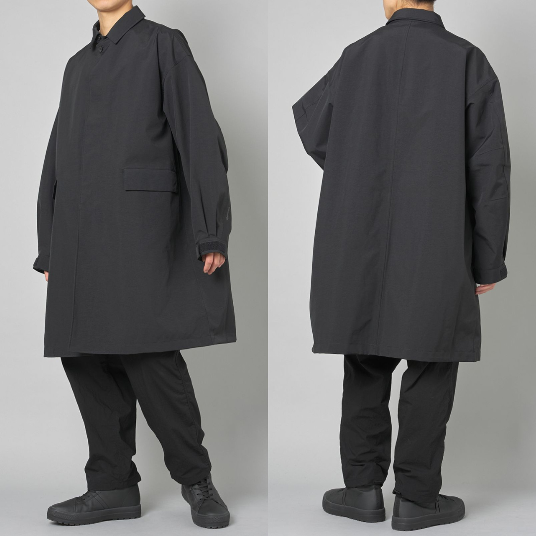最後にご紹介するのは、防水・防風・透湿の3つの高機能を兼ね備えた、ザ・ノース・フェイス(THE NORTH FACE)のオーバーコート。リサイクルナイロンを使用した、ハリと重厚感のある生地ながら、フロントは比翼仕様ですっきりとした印象に仕上がっています。