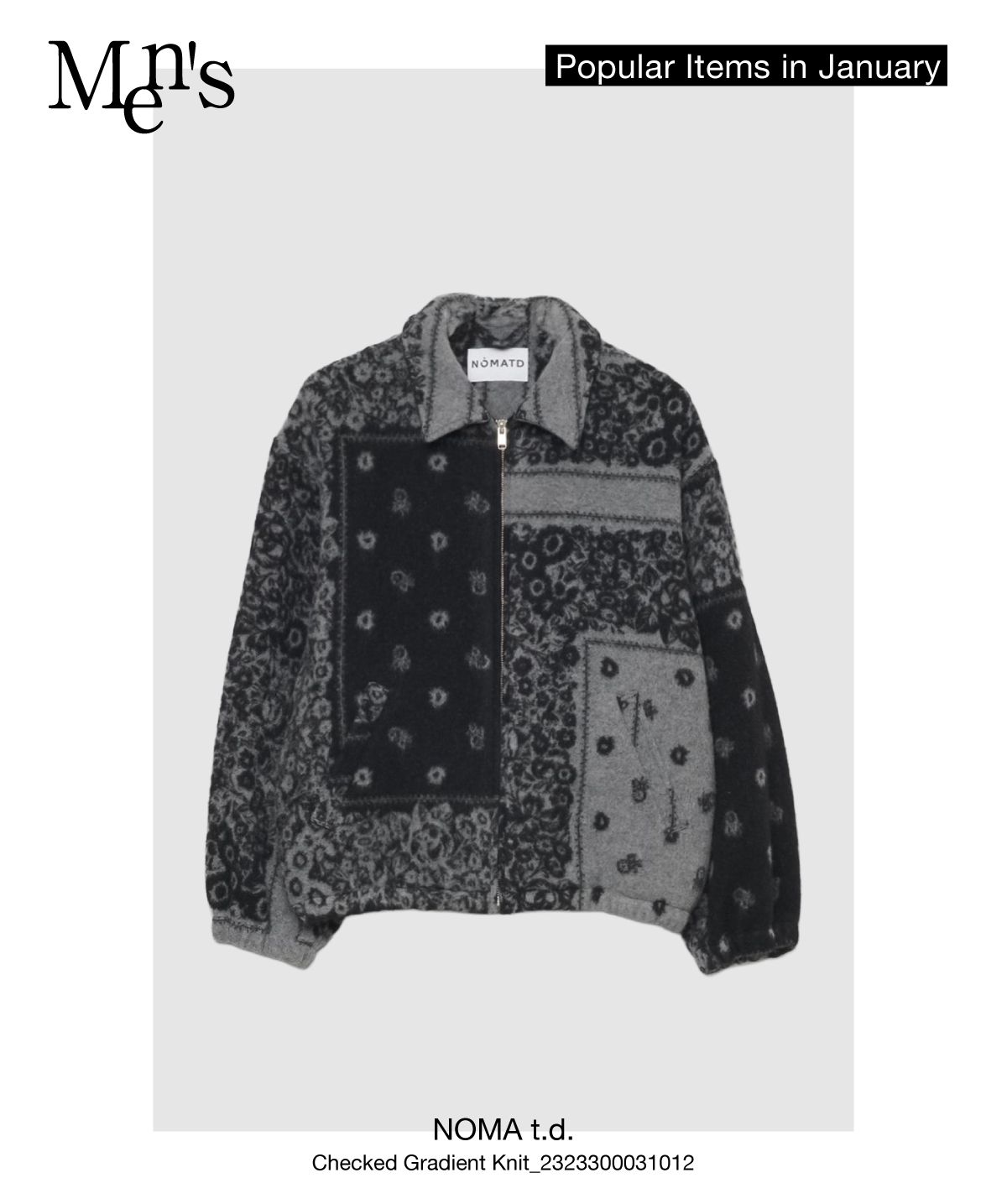 3点目は、ヴィンテージブランケットを思わせる、表情豊かな素材使いが目を惹くノーマティーディー(NOMA t.d.)のブランケットブルゾン。異なる柄やトーンを組み合わせたパッチワーク調のデザインが、どこか懐かしくも新鮮な存在感を放ちます。