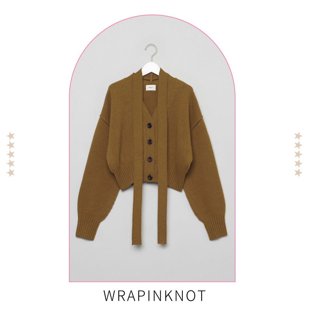 コンパクトな丈感に、袖に程よいボリュームを持たせた、シンプルながらも存在感のあるラッピンノット(WRAPINKNOT)のVネックニットカーディガン。カットソーや薄手のニット、シャツなどのインナーとのレイヤードはもちろん、アウターのインナーに合わせれば、トレンドカラーを差し色にしたこなれ感のある着こなしに。