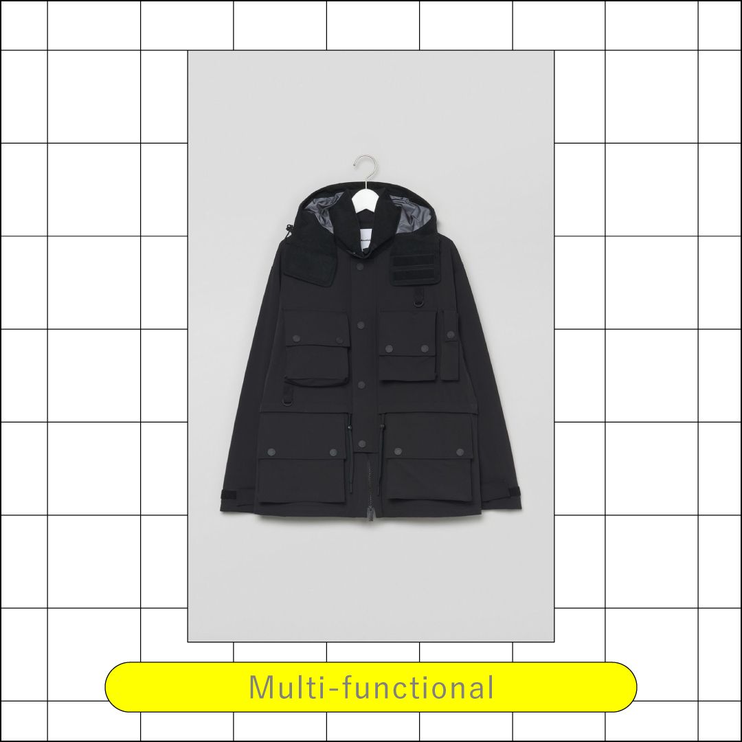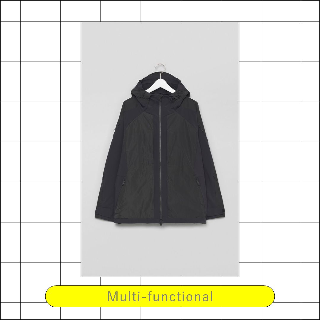 収納力や防風・防水性など、複数の機能を備えた多機能アウターは、コストパフォーマンスの高いアイテム。ベーシックカラーを選べば、通勤から休日まで幅広く活躍し、1着でさまざまなシーンに対応できるのが魅力です。