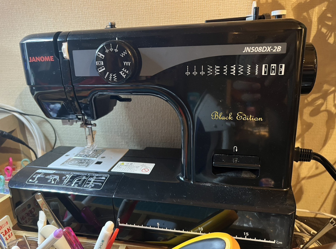 塚本さん:そうなんです。2022年に、相方の溜口がコロナにかかったのがきっかけでした。彼が復帰まで10日間ほどあったので、その間に何か新しいことをやろうと思い、ゲーム配信に挑戦しようとしたんです。それでゲームを見にビックカメラに行ったんですが、たまたまミシンコーナーを通りかかって、黒いミシンが目に入って。値段も手頃だったし、何より見た目がかっこよくて、気づいたら買っていましたね(笑)。