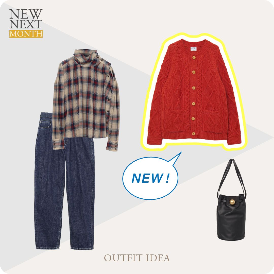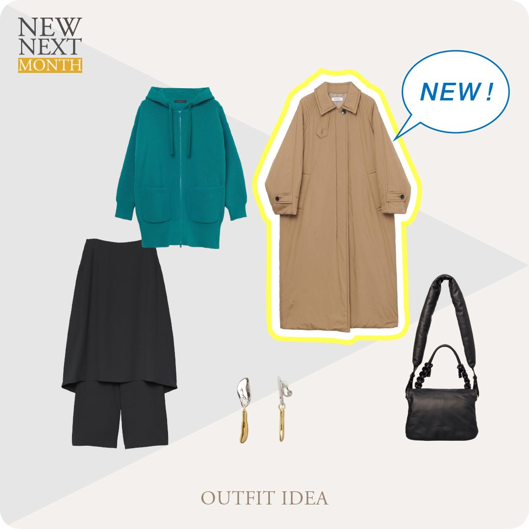 新入荷予定のアイテムから、秋冬のムードを楽しめる注目アイテムを使ったコーディネートをご紹介します。