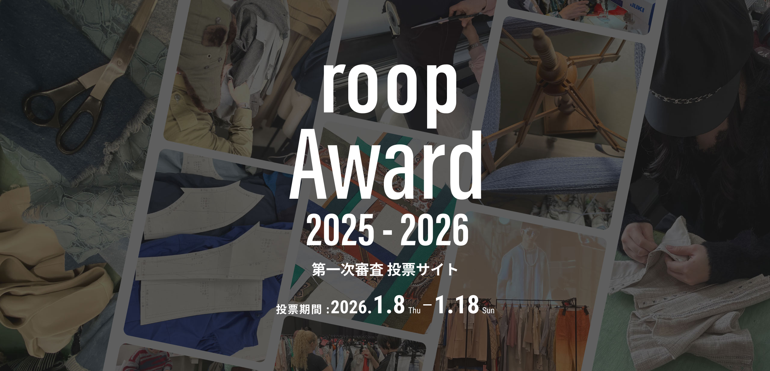 roop Award 2025-2026の第一次審査は、「WEBでの一般投票(※アナザーアドレス無料会員登録が必要です)」と「アナザーアドレスバイヤーによる審査」を実施。通過したプロ部門8名、アマチュア/学生部門8名の計16名が次の審査へと進みます。