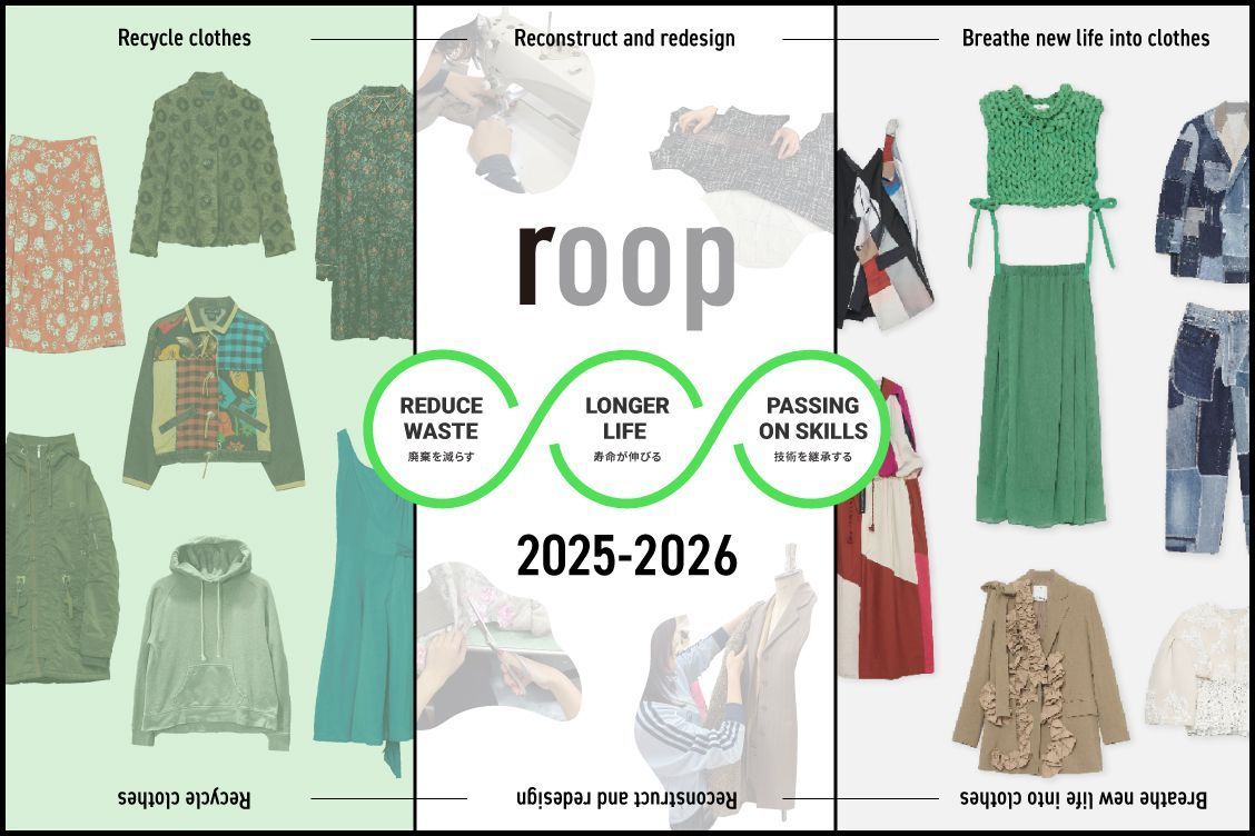 アナザーアドレスが2024年8月から推進している衣料循環アップサイクルプロジェクト「roop」。その一環として実施する「roop Award」は、ファッションを楽しむことを前提としながら、「洋服の廃棄を減らす・洋服の寿命を伸ばす・洋服の技術・意思を継承する」ことを体現した作品を選ぶファッションデザインコンテストです。