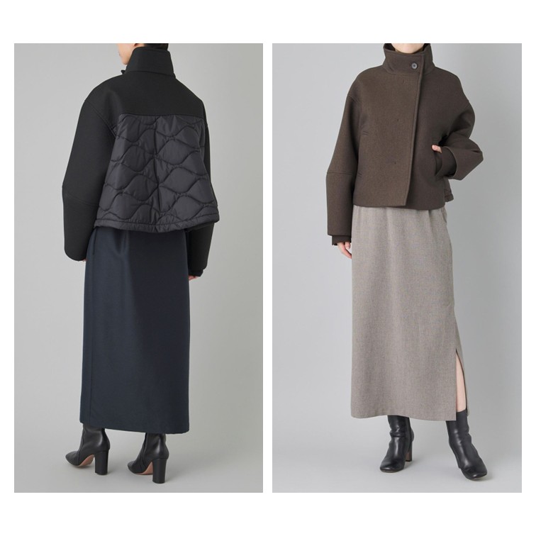 首元までしっかり包み込む高めのスタンドカラーで、防寒性も十分。マフラーやストールなしでも暖かく、すっきりとした着こなしが叶います。バックスタイルは、ハリのあるボンディング素材とふっくらとしたキルティングの切り替えデザインで、後ろ姿まで抜かりなくおしゃれに。カラーはブラウンとブラックのベーシックな2色展開で、毎日のコーデに頼れること間違いなしの万能アウターです。
