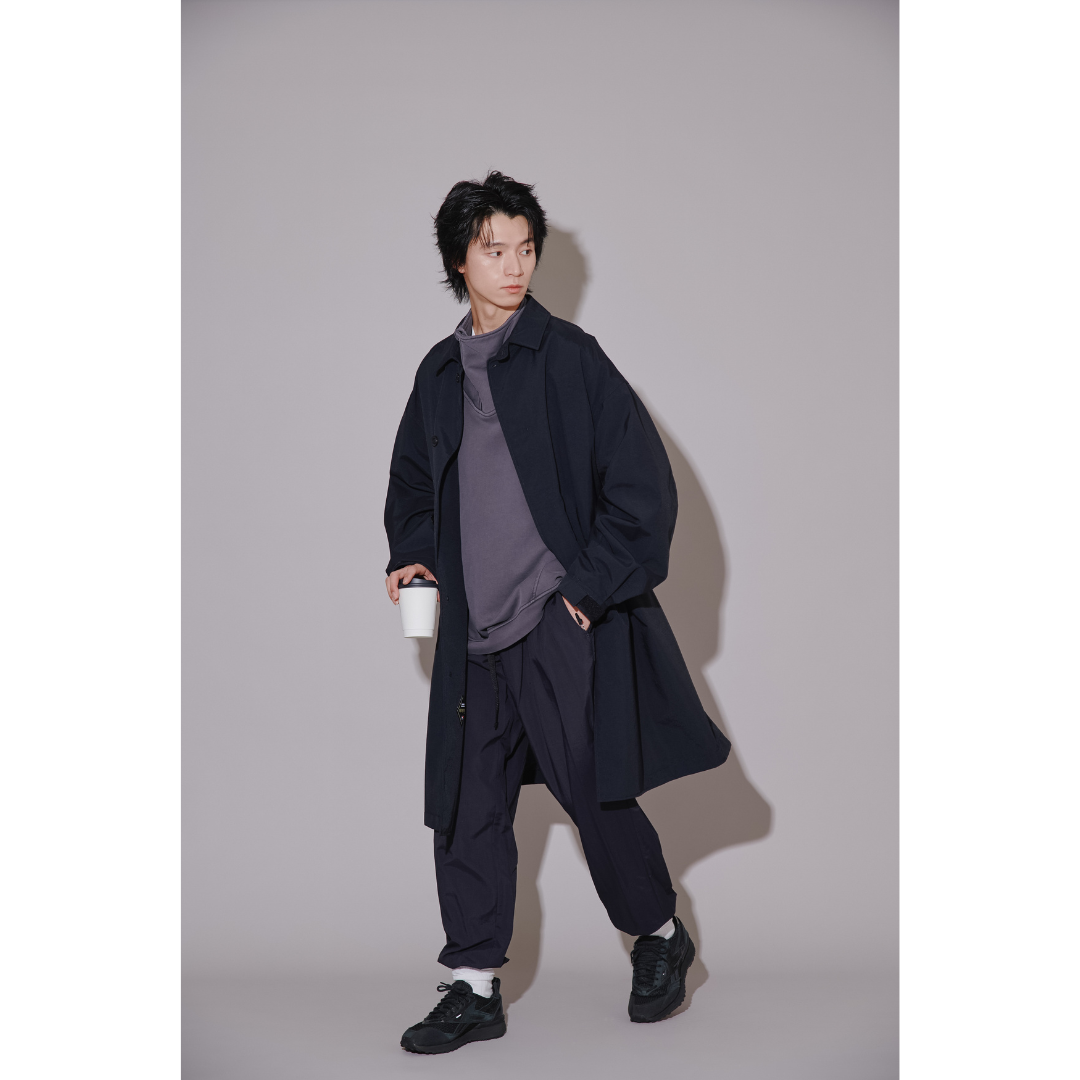 ザ・ノース・フェイス(THE NORTH FACE)のロングコートは、防水・防風・透湿性に優れた高機能素材ながら、きれいめに合わせられる1着。インナーには保温性の高いグレーのフリースを合わせ、配色に奥行きをプラス。重心が下になりがちなロングコートでも、ボトムスの裾をコンパクトにまとめることで全体のシルエットにメリハリが生まれ、バランスのよい印象に仕上がります。