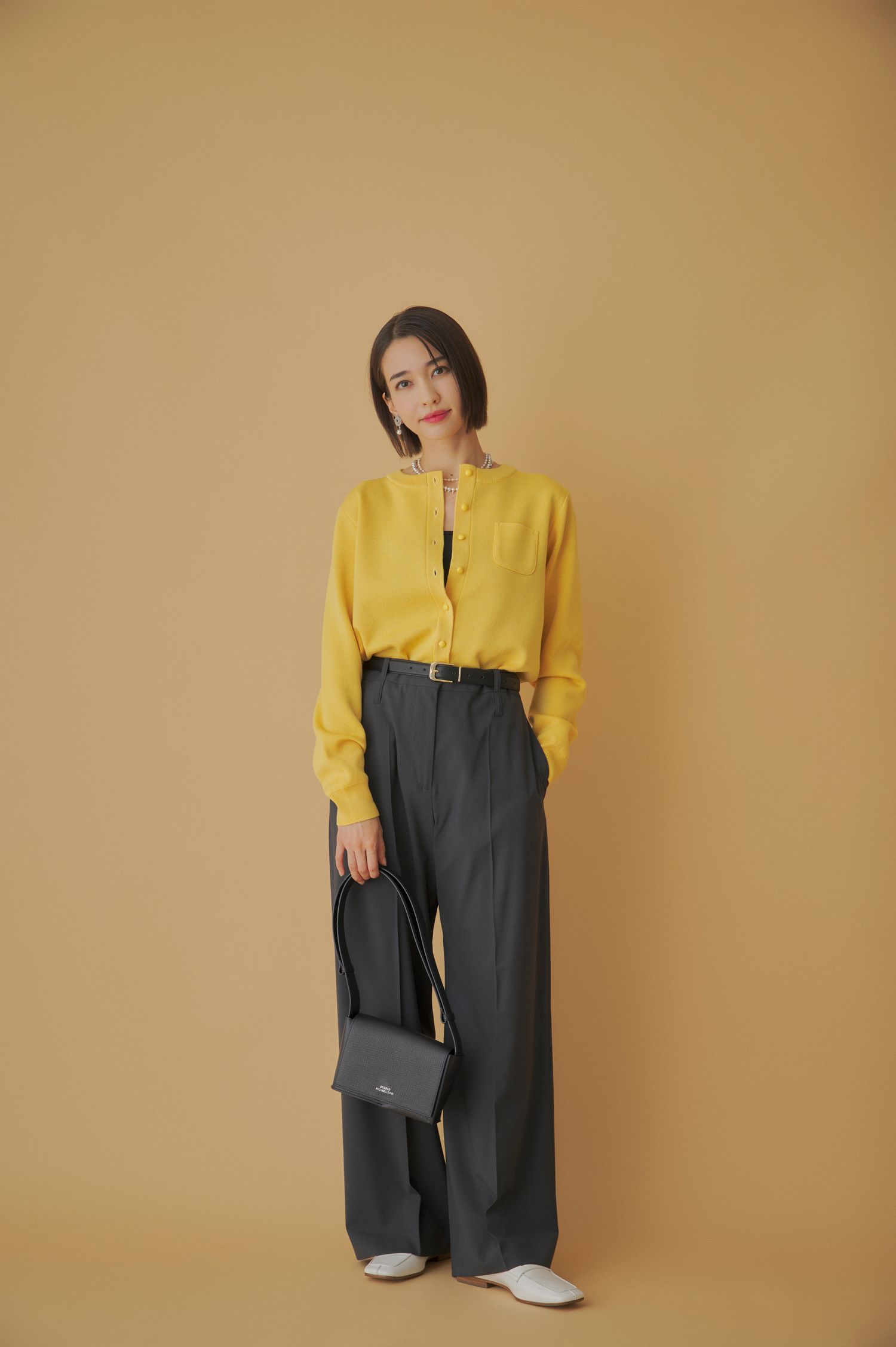 春色カーディガンを主役にした、軽やかな渡韓コーデ。鮮やかなイエローのニットカーディガンは、取り入れるだけで顔まわりをぱっと明るく見せてくれ、写真映えも期待できます。インナー次第で印象を変えられるうえ、体温調節もしやすいため、荷物をコンパクトにしたい春の旅行にぴったりです。