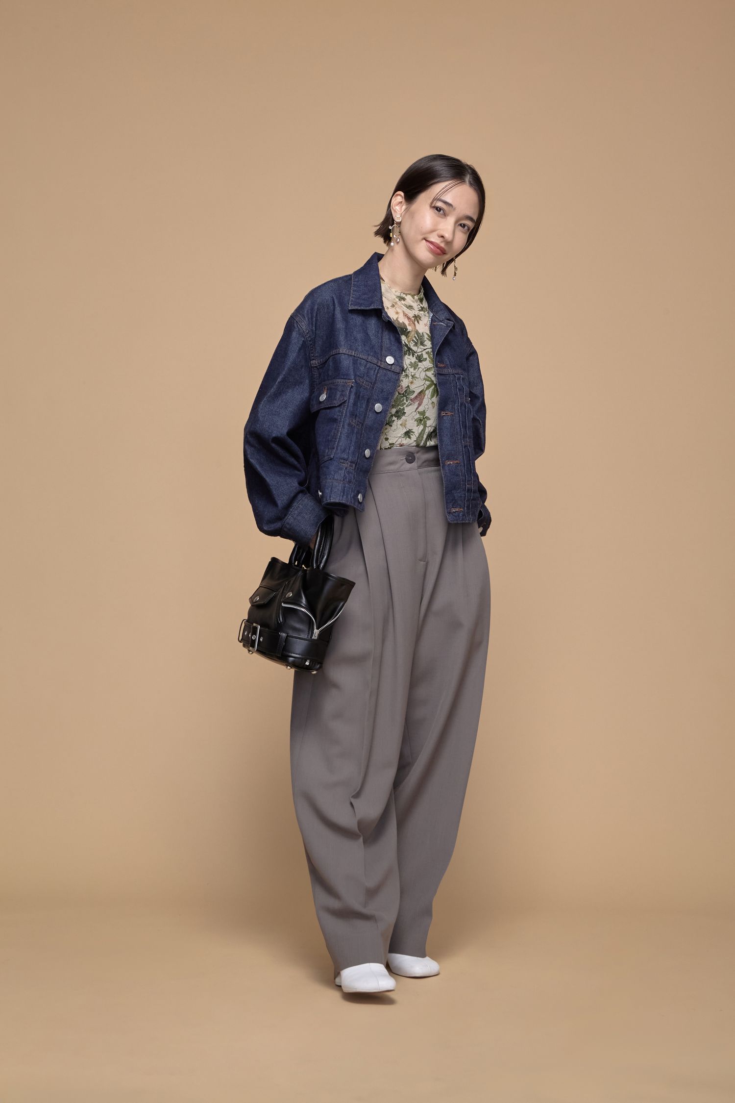 まだ肌寒さが残る春の初めは、デニムジャケット×ベストのレイヤードが活躍。重ね着することで体温調節がしやすく、シンプルな装いにも奥行きが生まれて洒落感が高まります。手元には春色バッグを合わせ、軽やかなカラーで旅気分をさりげなく盛り上げて。