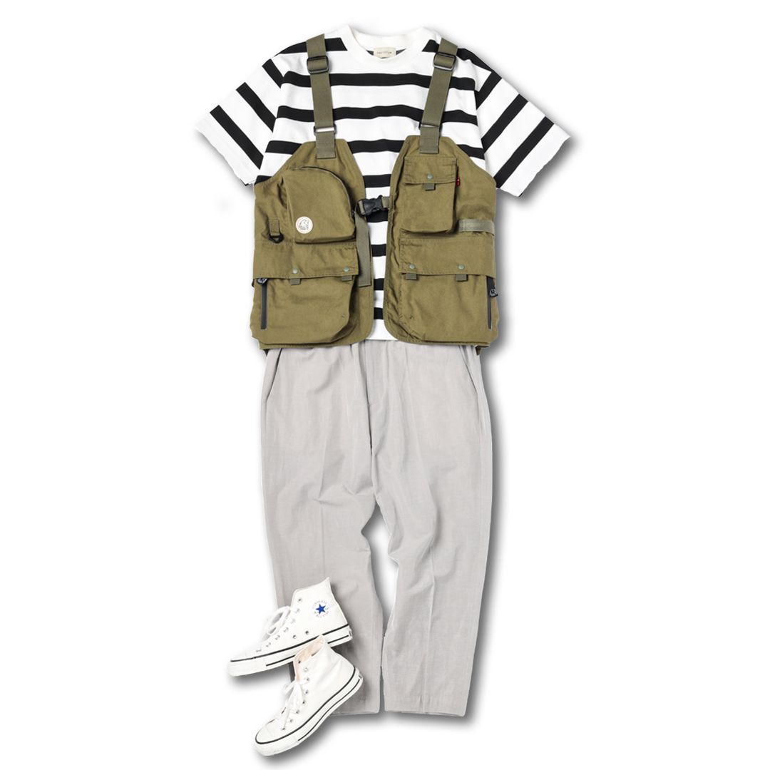 フェスや旅行など、何かと荷物が増えがちな夏のお出かけ。バッグを持たずに身軽に出かけたい30代男性には、機能性ベストを取り入れたスタイルがおすすめです。収納力を確保しながら、コーディネートのアクセントにもなり、さりげなくコーデを格上げできます。