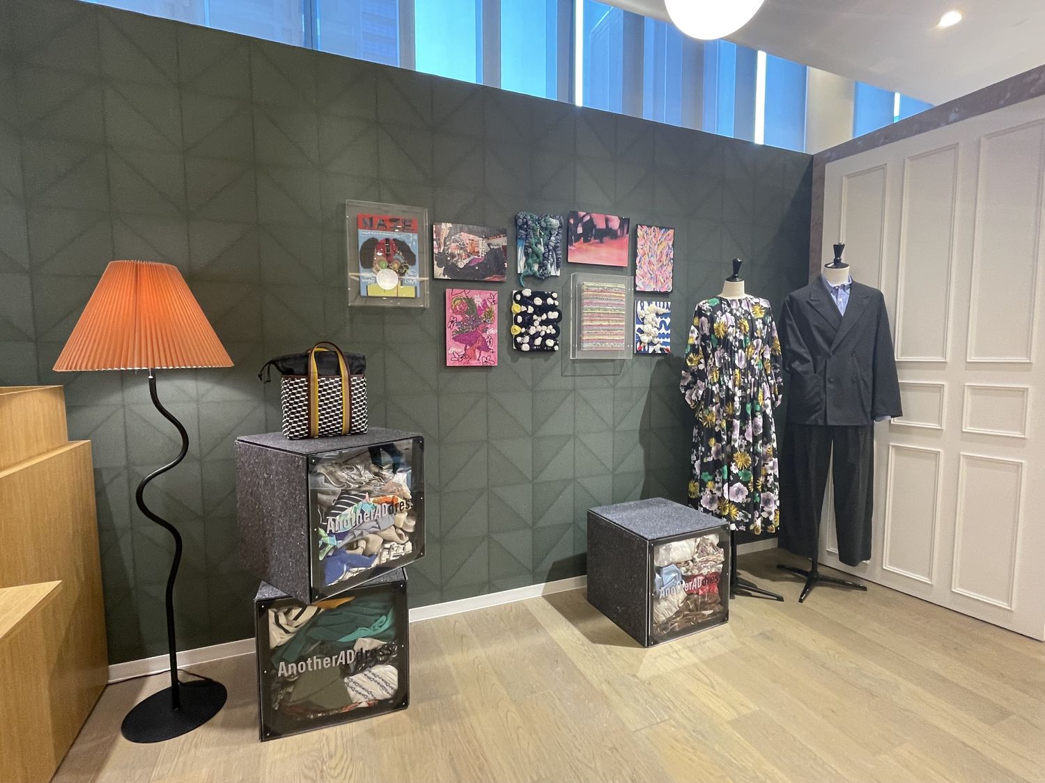 さらに店内奥へと進むと、ディスプレイマネキンや、アナザーアドレスでレンタルできるアート作品が壁面に並び、ブランドの世界観を感じさせる空間が広がっていました。