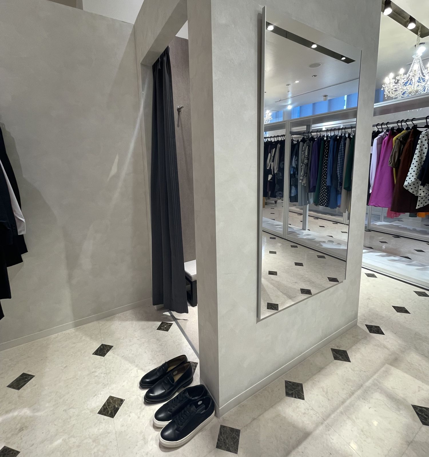 また、店内には男女別に分かれた試着室も用意されていました。周囲の視線を気にすることなく、プライベートな空間で気になるアイテムを試せます。