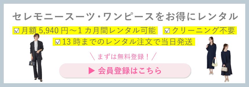 入園式・入学式は、子どもにとってはもちろん、ママにとっても大切な一日。だからこそ、きちんと感と自分らしさを意識したとっておきの装いで臨みたいものです。アナザーアドレスなら、スーツやセットアップ、ワンピースなど、入園式・入学式にふさわしいセレモニー向けアイテムを豊富にラインナップ。着用シーンが限られる行事服もレンタルで取り入れられるため、必要なときだけ無駄なくお楽しみいただけます。
