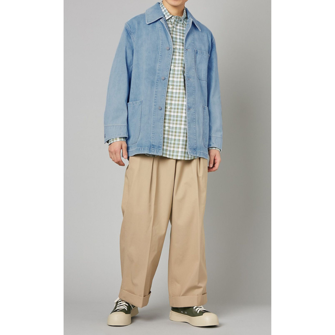 最後にご紹介するのは、昨年シーズンに引き続き、2026年春夏のトレンド要素に上がっている“ワークジャケット”から、マーカウエア(MARKAWARE)のカーペンターコート。アイスウォッシュデニムを使用した軽やかな表情は、春らしい抜け感を演出しつつ、ワーク由来の無骨さを程よく和らげてくれます。