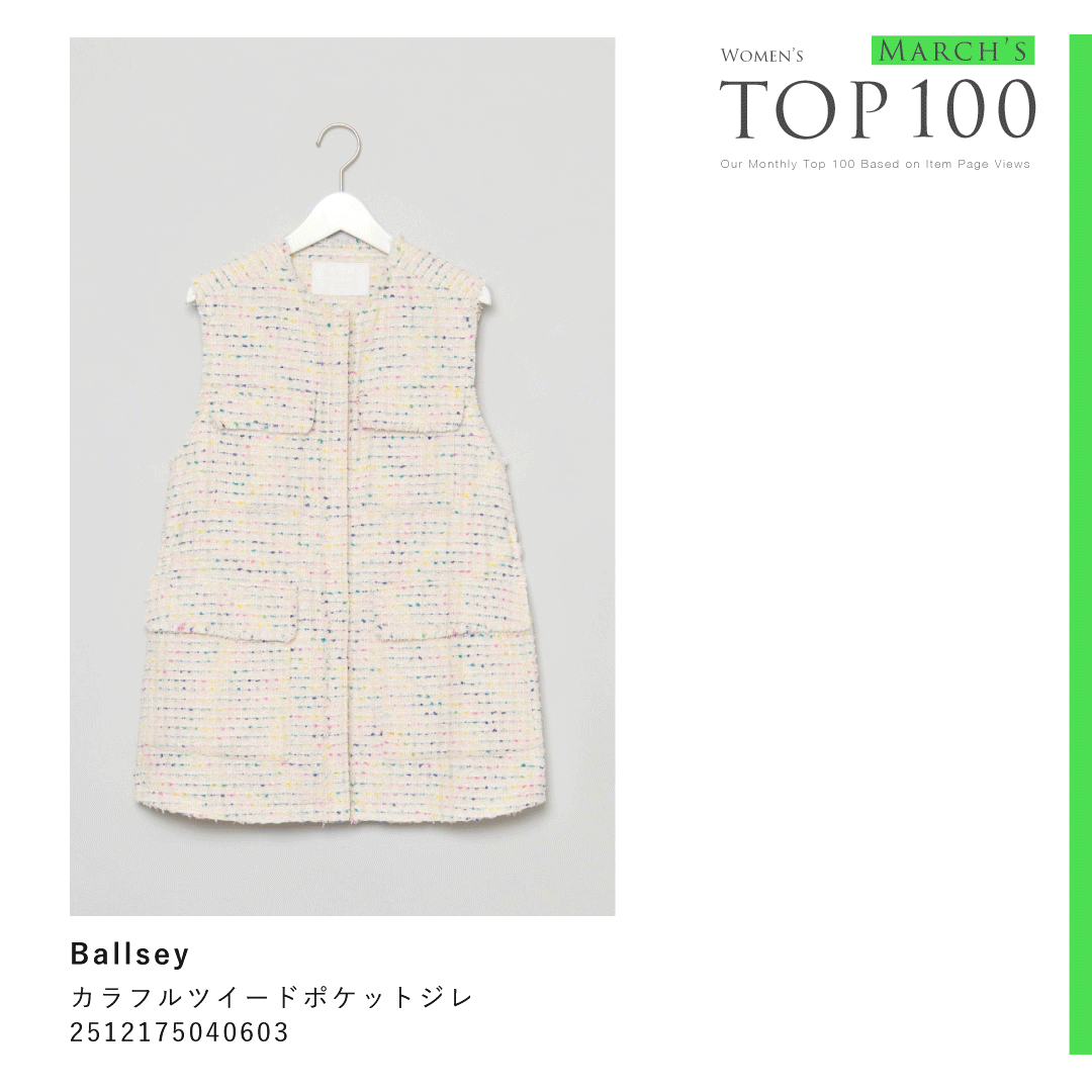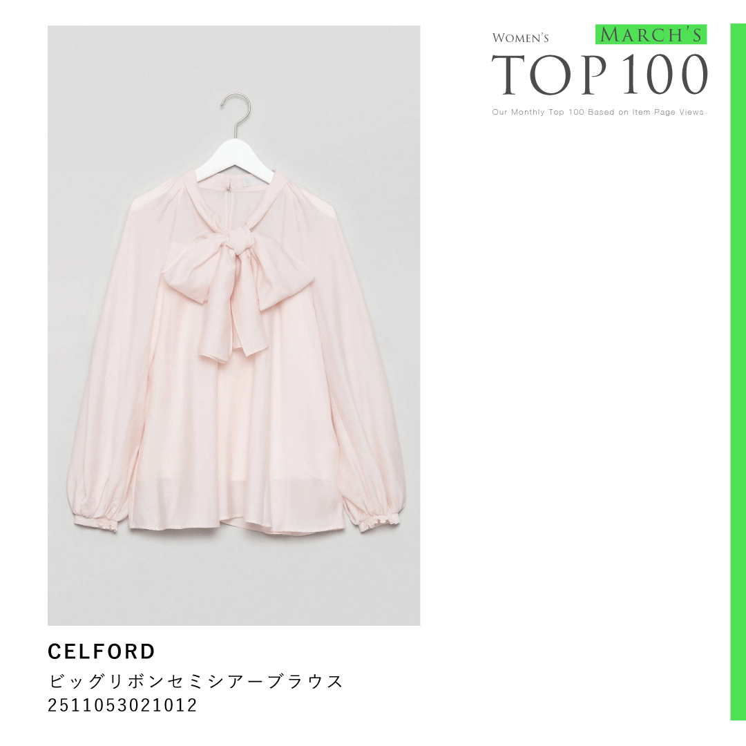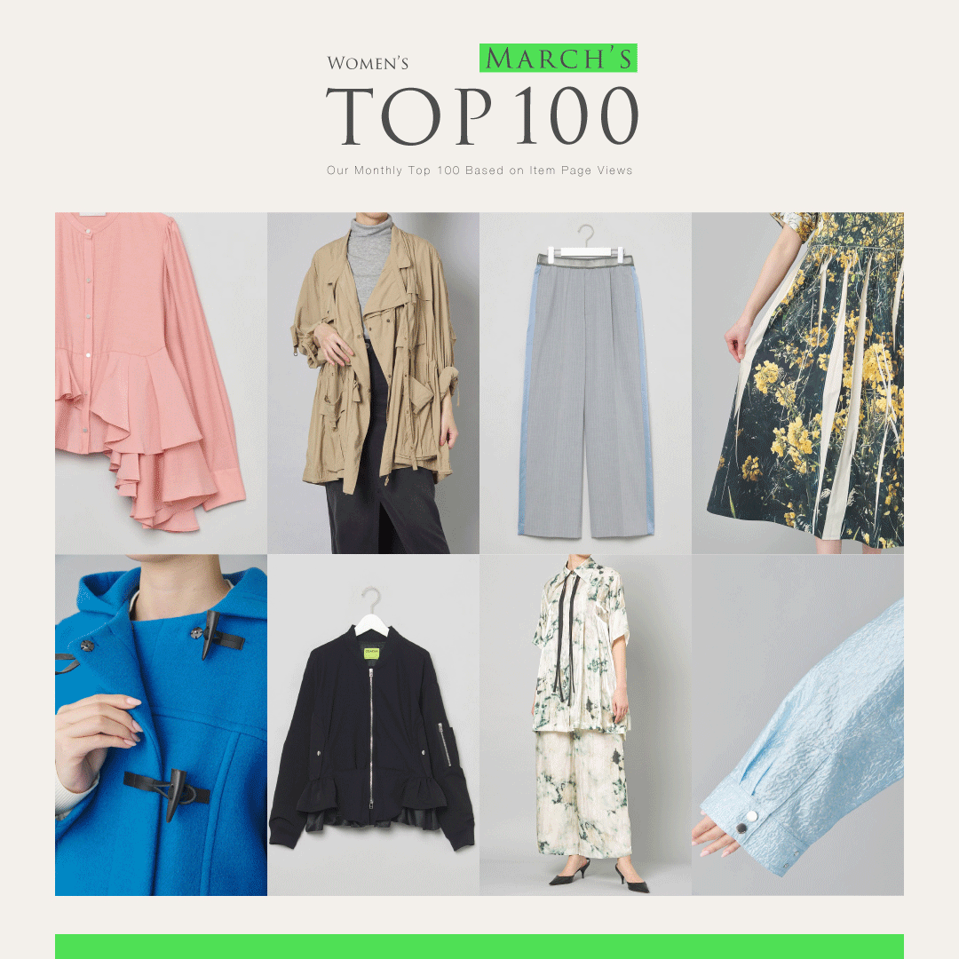 2026年3月の注目商品ランキングTOP100【レディース編】を発表!ランキングには、パステルカラーのブラウスやジレ、花柄刺繍のライトアウターなど春先に活躍するアイテムが多彩なアイテムがランクイン。気になる商品は「お気に入り登録」や「再入荷LINE登録」を活用して、ぜひチェックしてみてください。