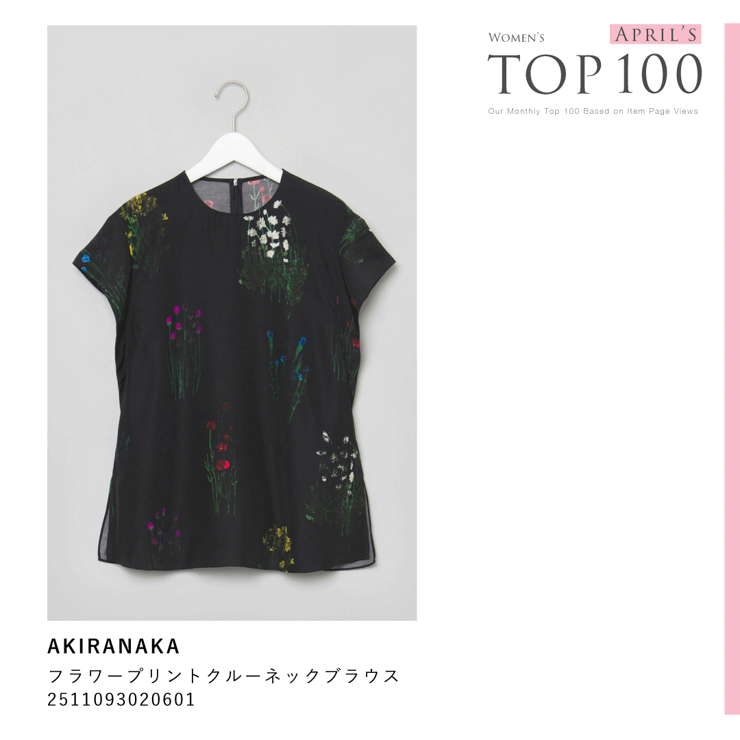 次にご紹介するのは、アキラナカ(AKIRANAKA)のフラワープリントブラウス。ほんのりかすんだグラフィックが儚げなムードを演出する、アーティスティックな1枚。