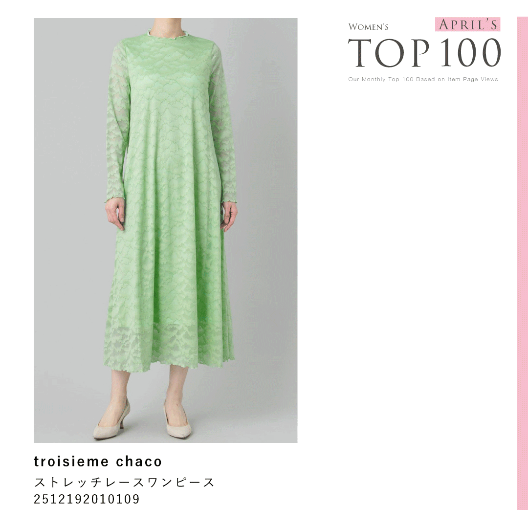 2026年4月の注目商品ランキングTOP100【レディース編】を発表!ランキングには、トレンチコートやシャツワンピースなど春先に活躍するアイテムが幅広くランクイン。気になる商品は「お気に入り登録」や「再入荷LINE登録」を活用して、ぜひチェックしてみてください。