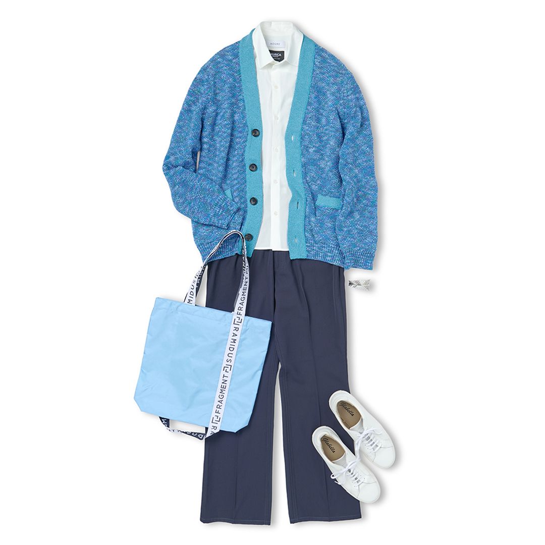 5月になると最高気温は20度を超える日も増え、日中は汗ばむ陽気になることも。朝晩はやや涼しさが残るものの、本格的に“軽さ”を意識した服装へシフトするタイミングです。アウターは手放し、薄手のカーディガンやシャツを主役にしたコーディネートがおすすめです。ブルーのカーディガン×白シャツの着こなしは、初夏らしい爽やかさを演出。ボトムスはブラックのフレアパンツを合わせて、全体をすっきりと引き締めて。