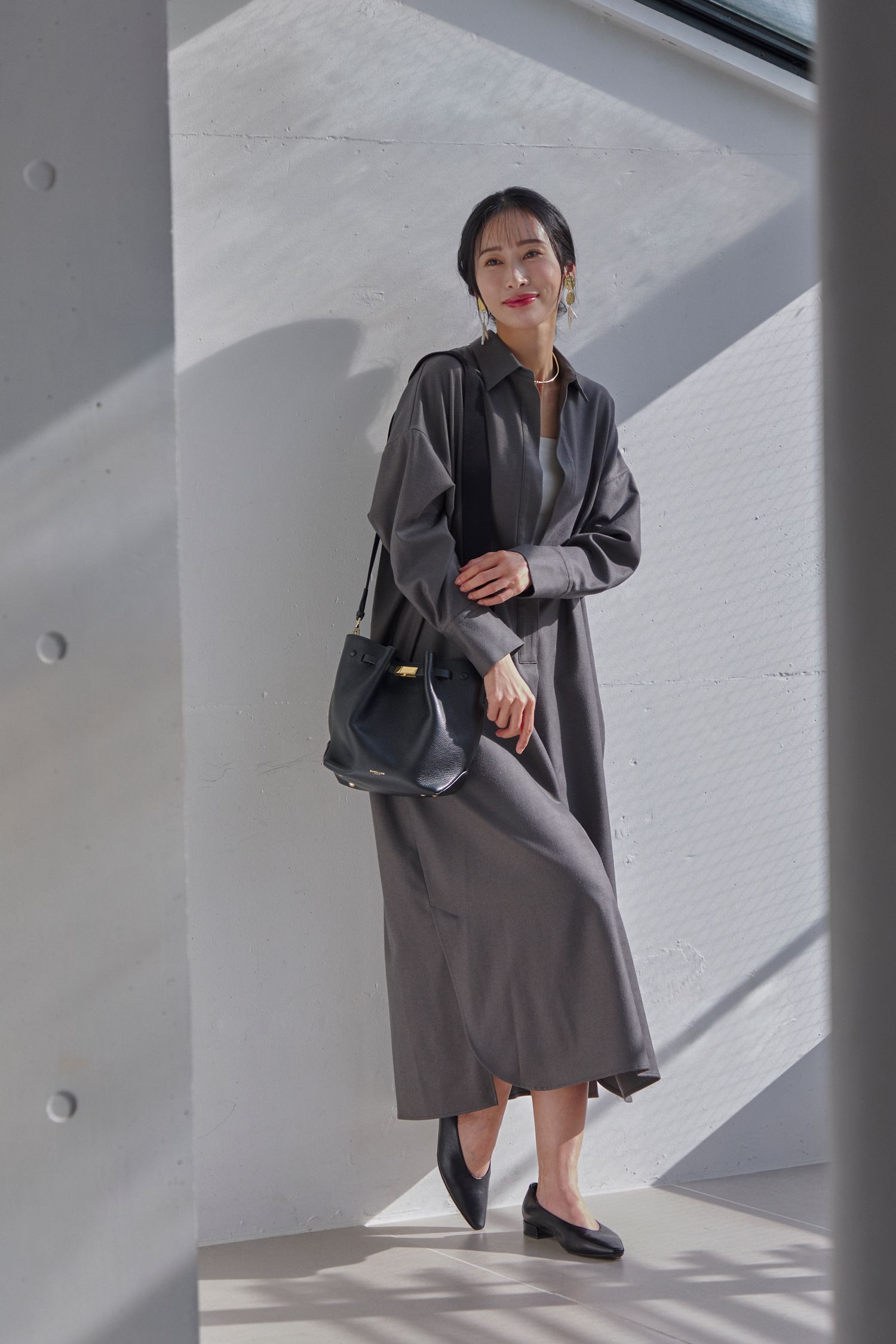 シャツワンピースは、シャツのきちんと感とワンピースならではの手軽さを兼ね備えた万能アイテム。1枚でさらりと着るだけでコーデが完成するうえ、羽織りとしても使えるため、1枚あると着こなしの幅がぐっと広がります。加えて、きれいめにもカジュアルにもアレンジできるので、通勤から休日のお出かけまで幅広いシーンで使えるのも魅力です。