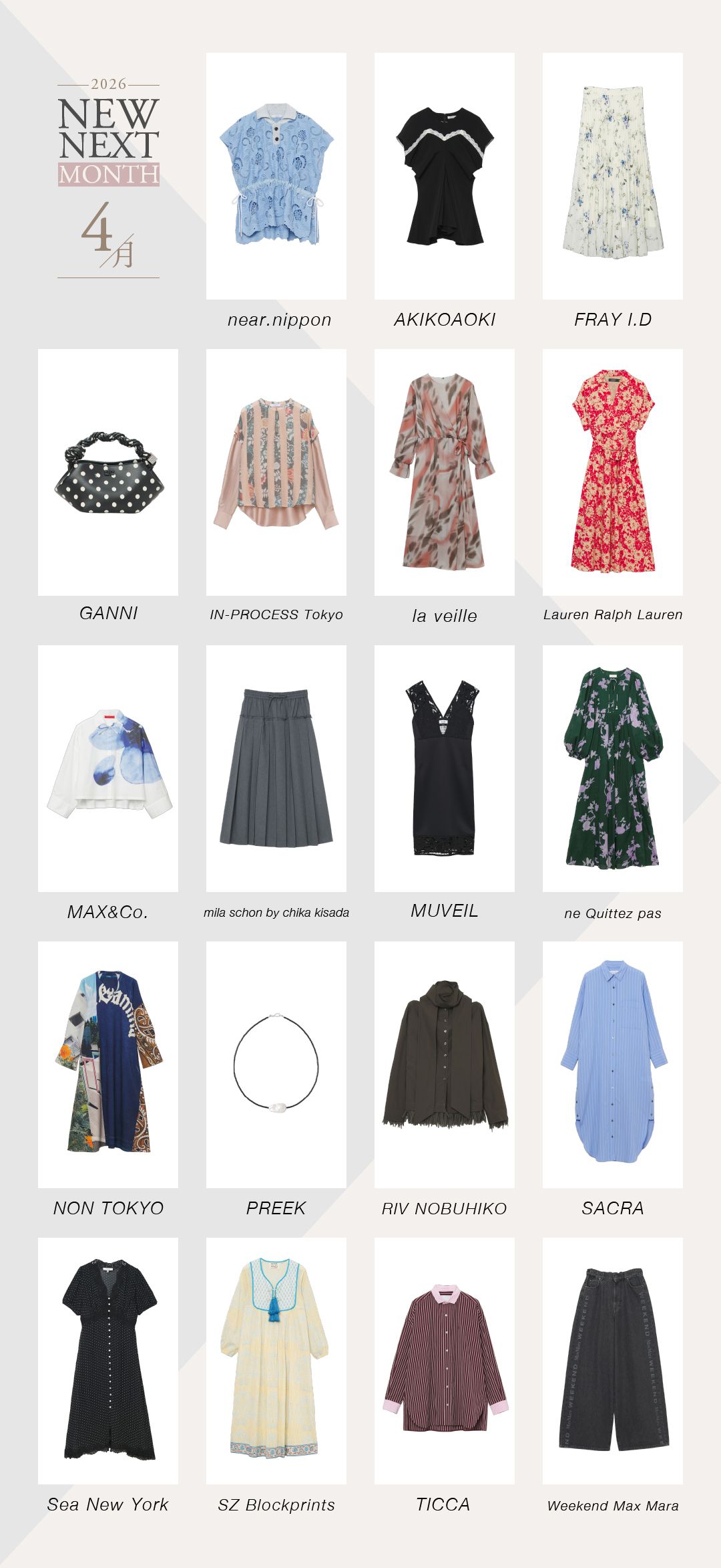この記事では、2026年4月の「NEW THIS WEEK」で入荷予定のアイテム・ブランドをご紹介します。各商品の入荷日はこの記事では公開していないので、毎週金曜日配信の「NEW THIS WEEK」をお見逃しなくチェックしてくださいね。