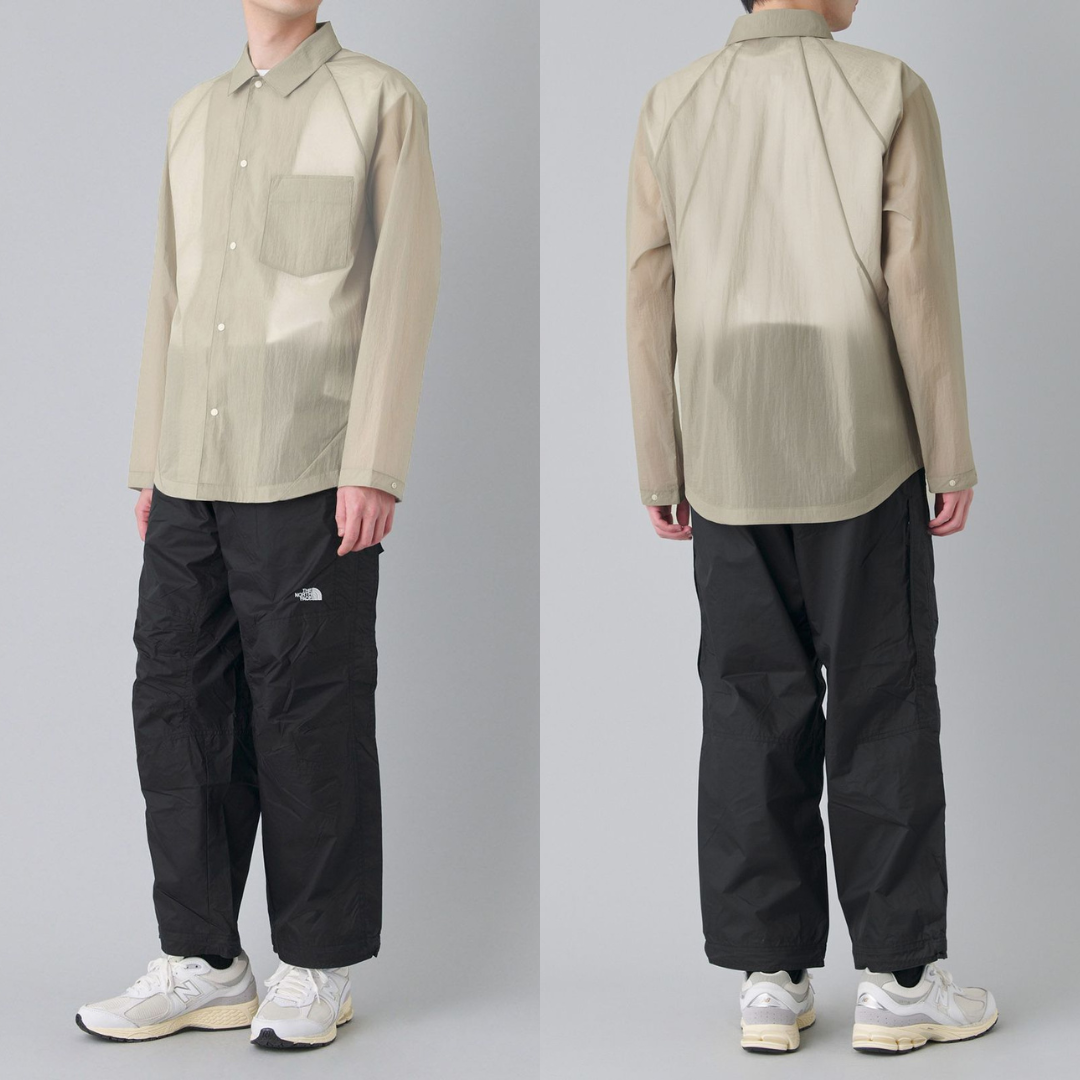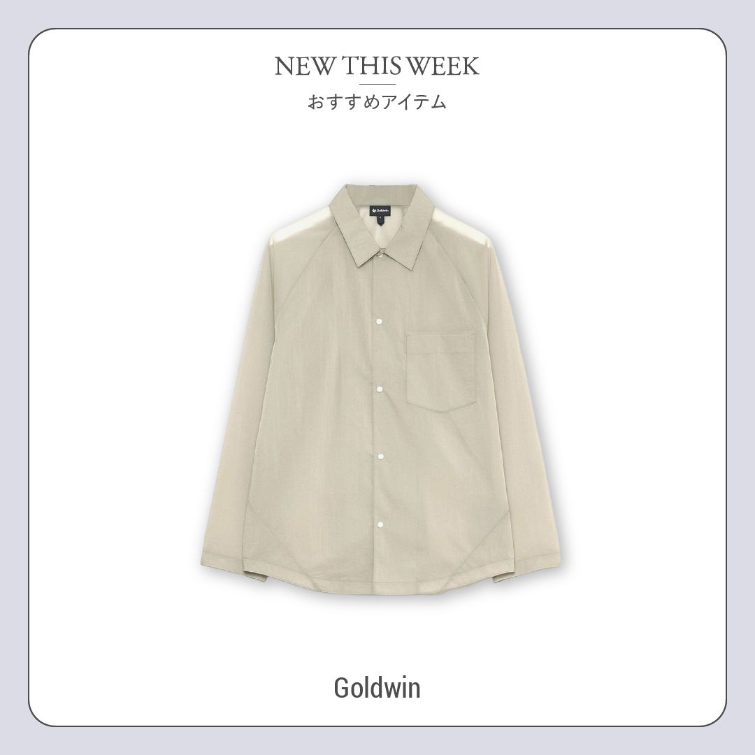 最後にメンズアイテムから、シアー感のある生地で仕立てられた、ゴールドウイン(Goldwin)の軽量シャツをご紹介。ナイロン素材を薄く平織りし、背面と脇にはレーザーでパンチング加工を施すことで高い通気性を実現しています。