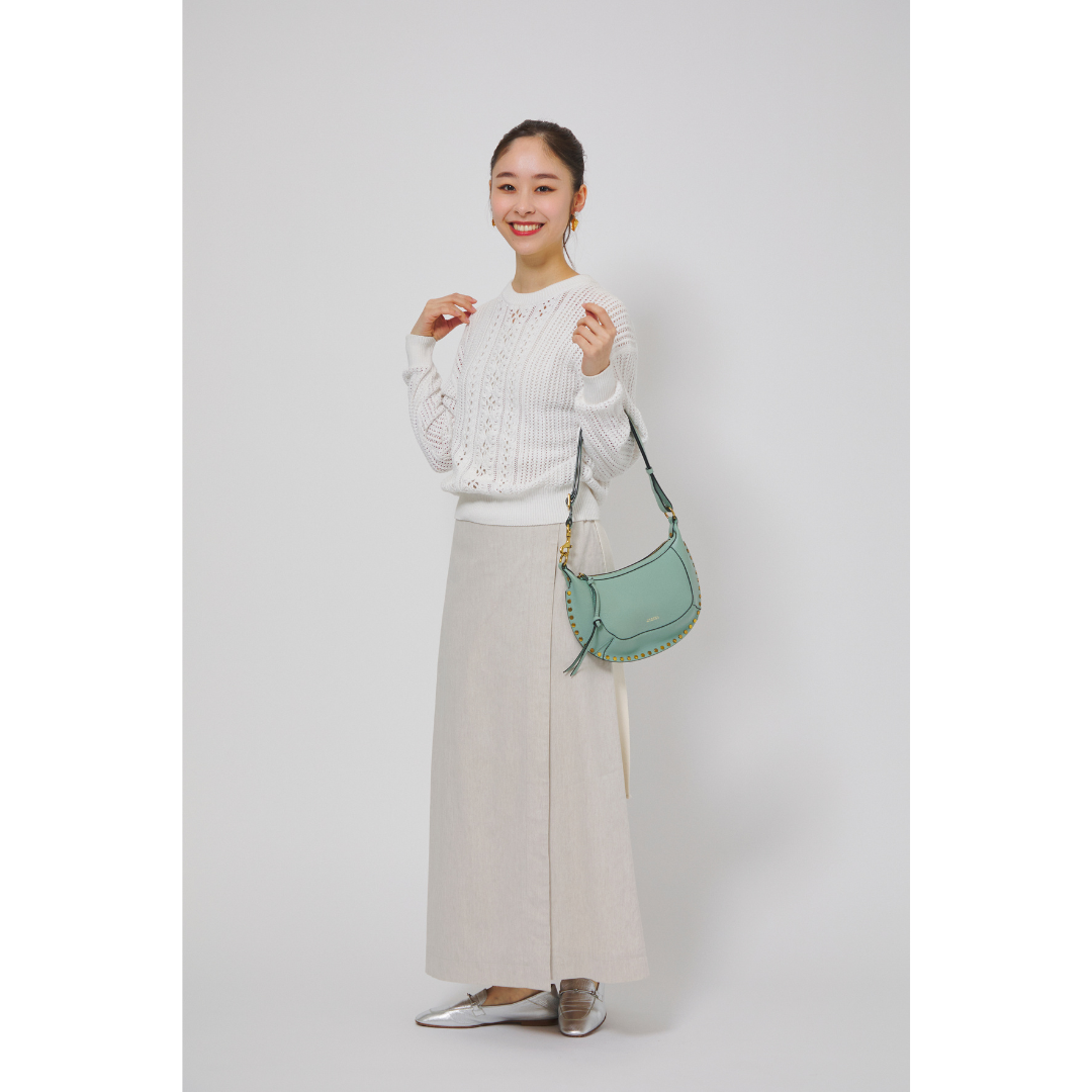 きれいめ派の大人女性が無理なくかわいさを取り入れるなら、やわらかいカラーは使いつつも、甘くなりすぎないデザインやシルエットのアイテムを選ぶのがコツです。