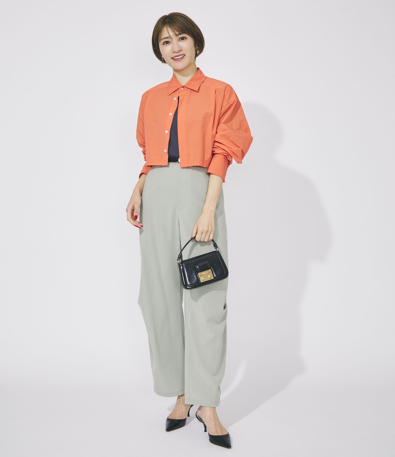 スタイルアップを叶える計算されたクロップド丈のシルエットは、どんなボトムスとも好相性。さらりと重ねてもバランスがとりやすく、今っぽく洗練されたスタイルに仕上がります。イチオシは、Iラインを意識したスタイルです。